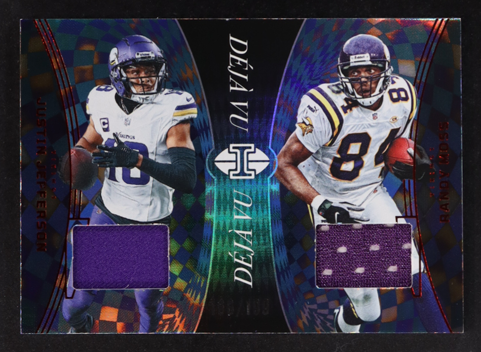Justin Jefferson / Randy Moss 2024 Panini Illusions Deja Vu Jerseys Red #4 #166/199