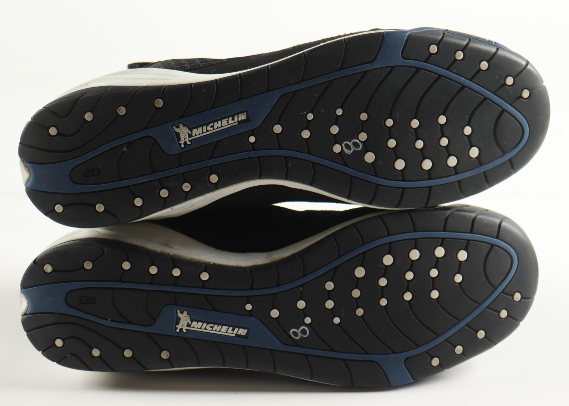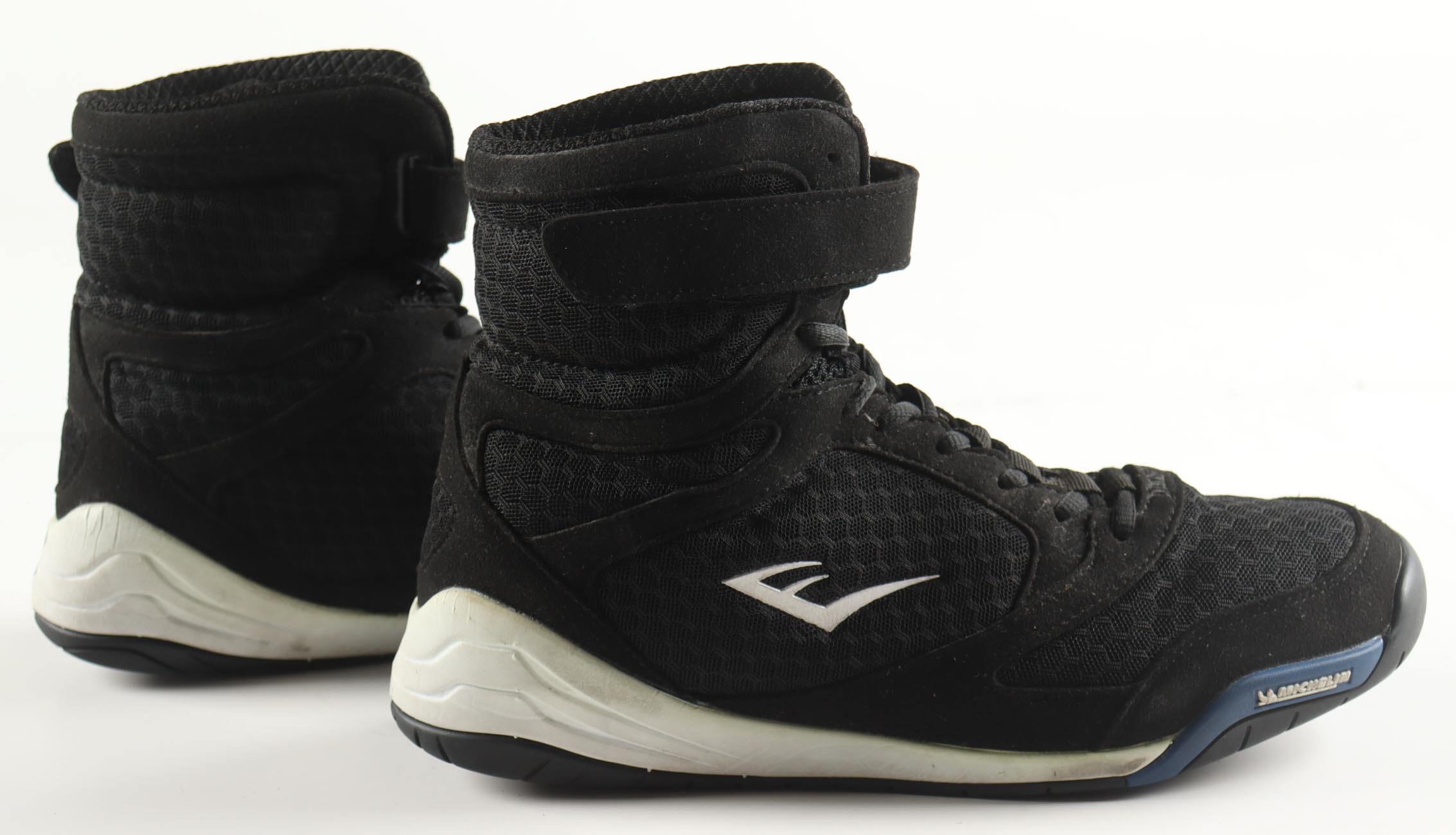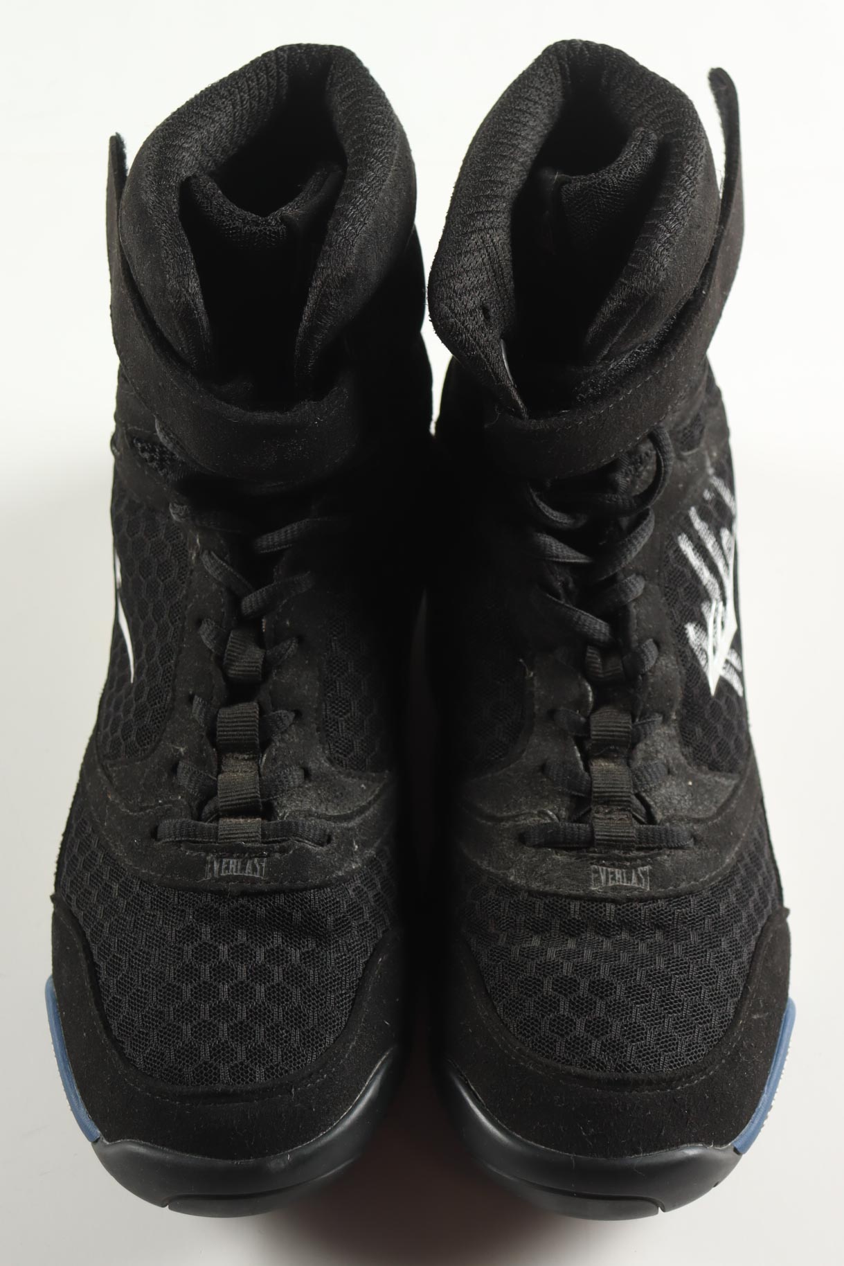 Pair of (2) Everlast Michelin Professional boxing boots. The left boot has been hand-signed by Mike Tyson (HOF). The display case is included in the listing as shown above.