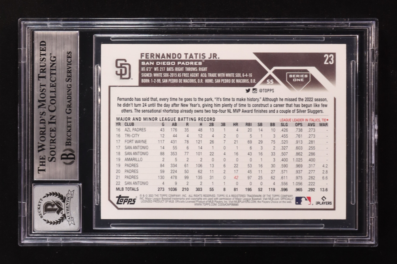 Fernando Tatis Jr. Signed 2023 Topps Series One #23 (BGS | Autograph Graded BGS 10)