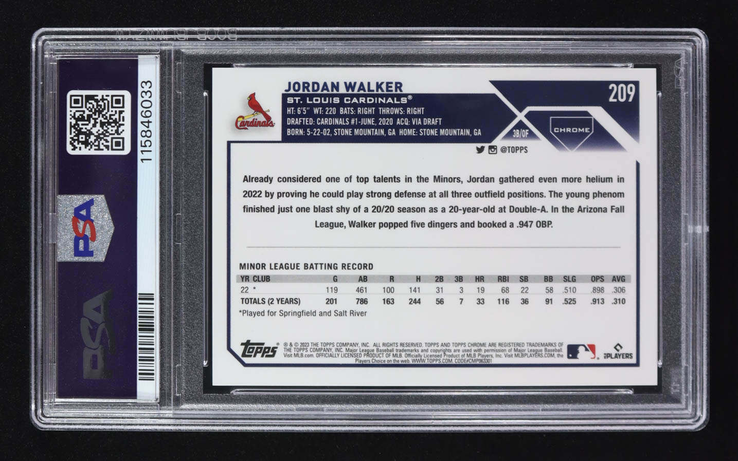 Jordan Walker 2023 Topps Chrome Logofractor Photo Variations #209 RC (PSA 10)