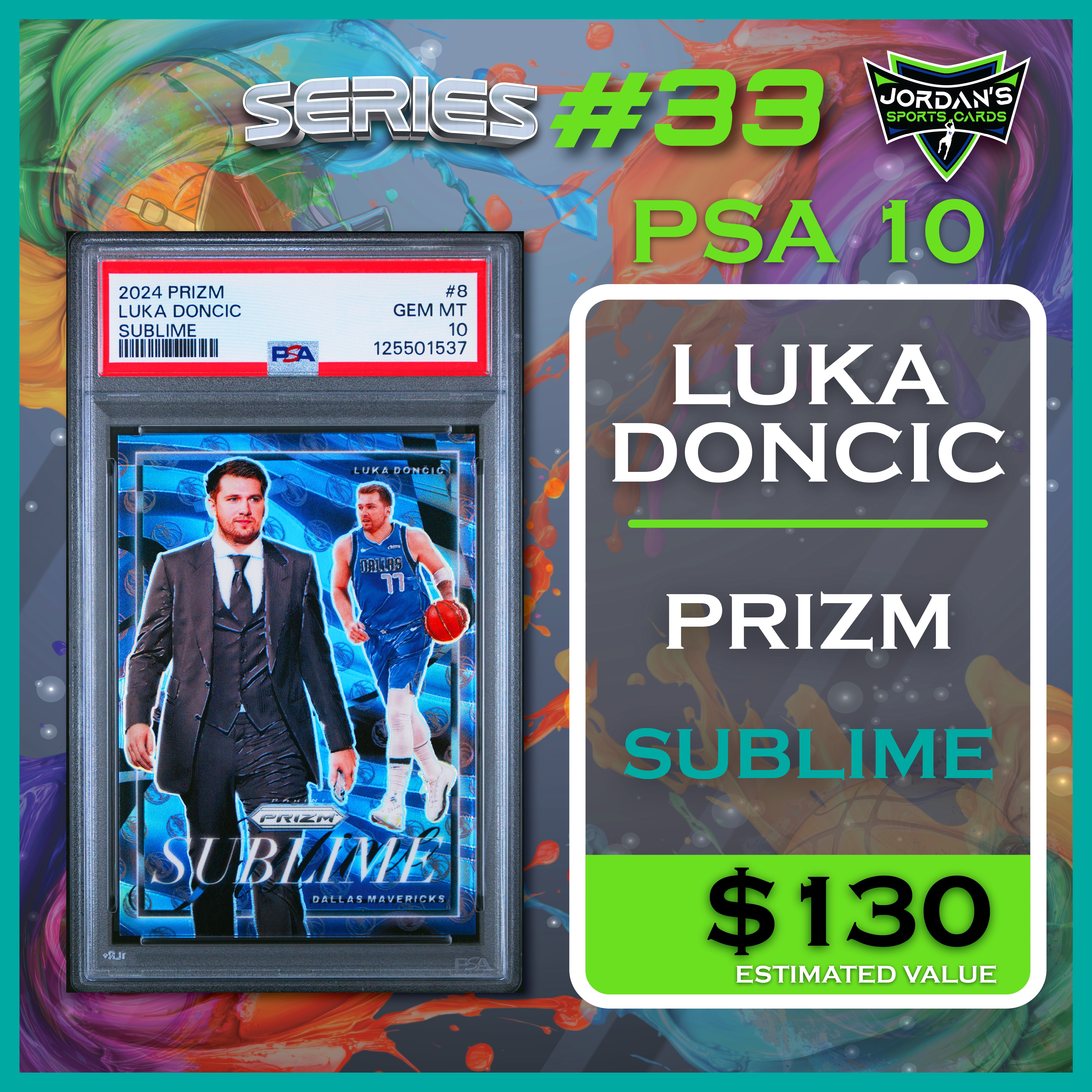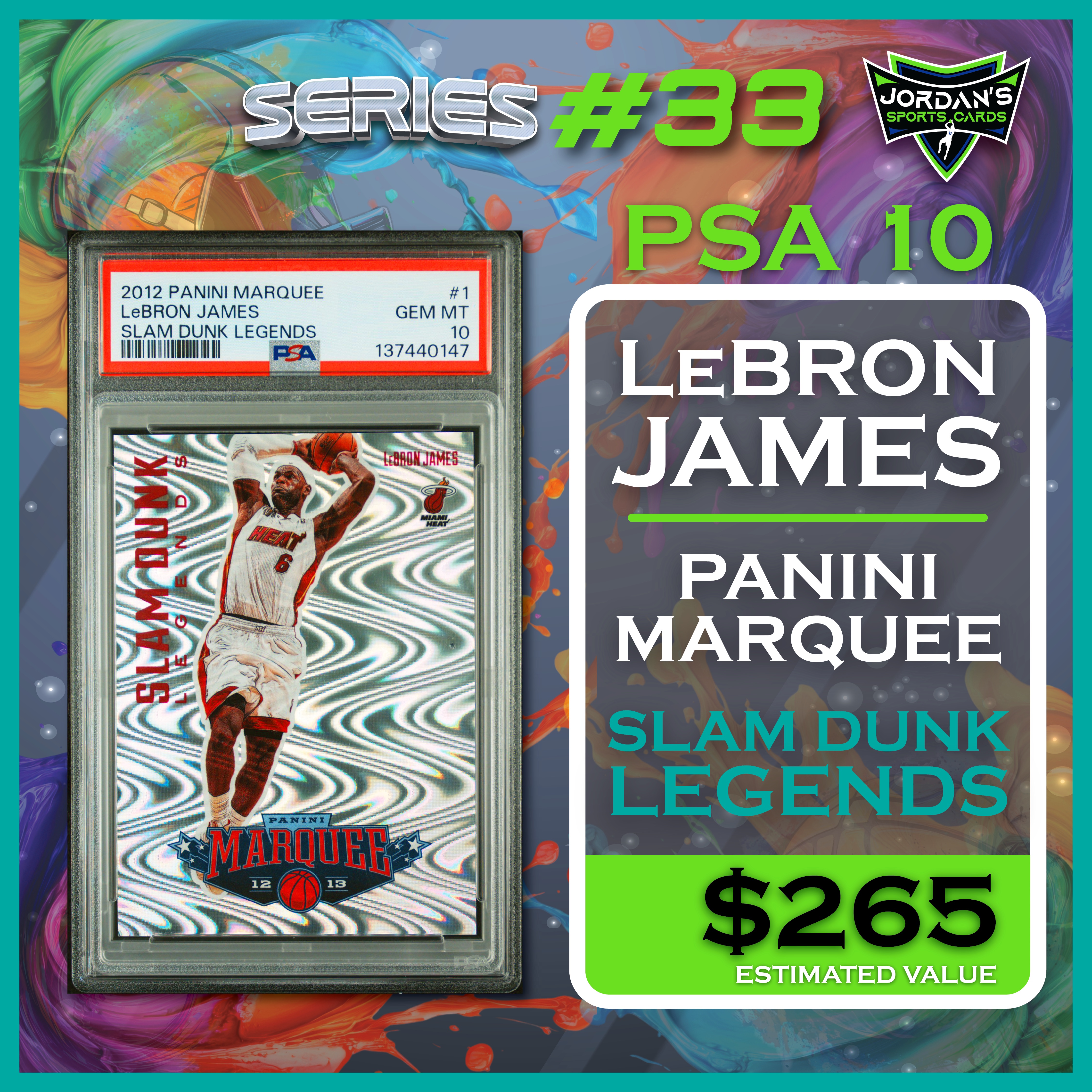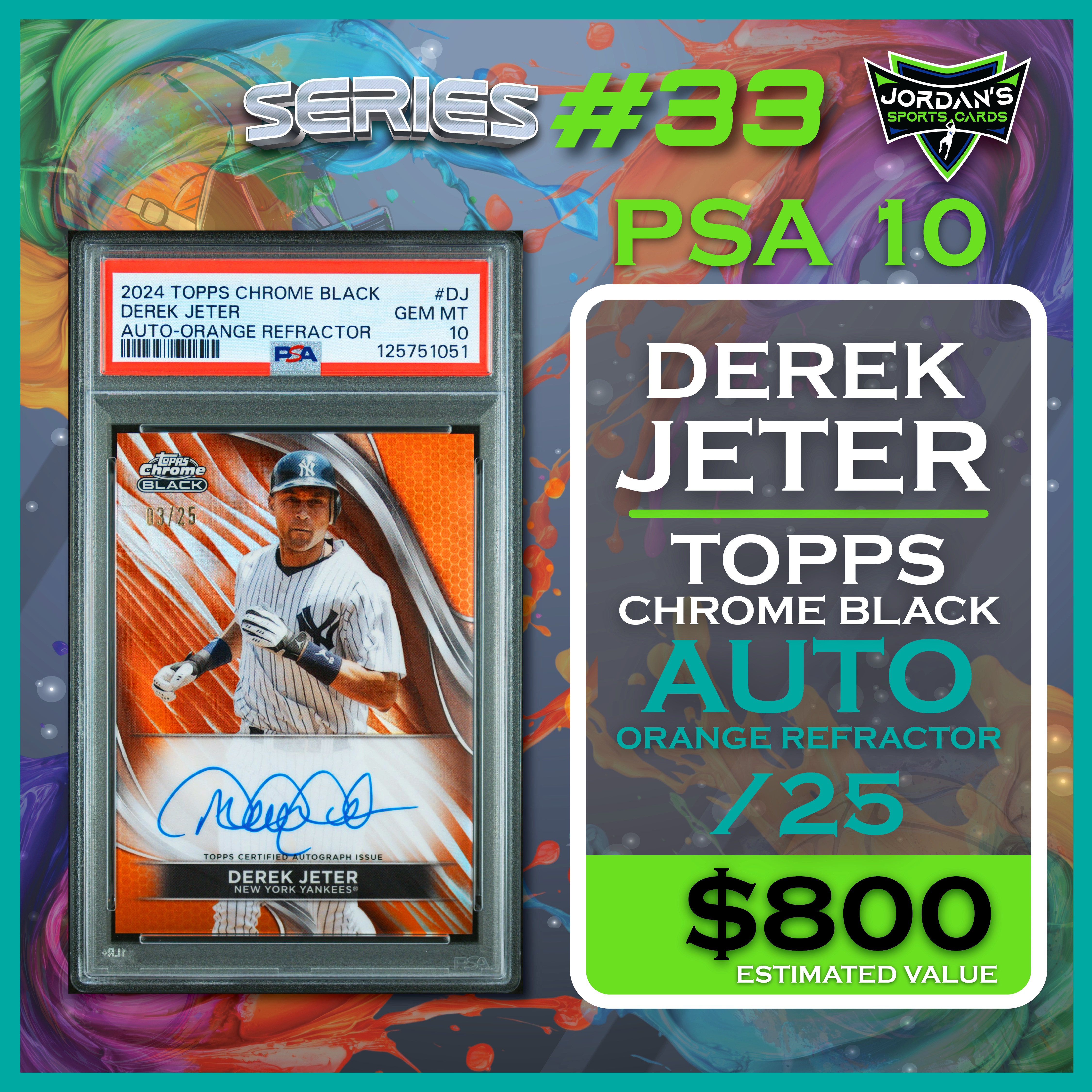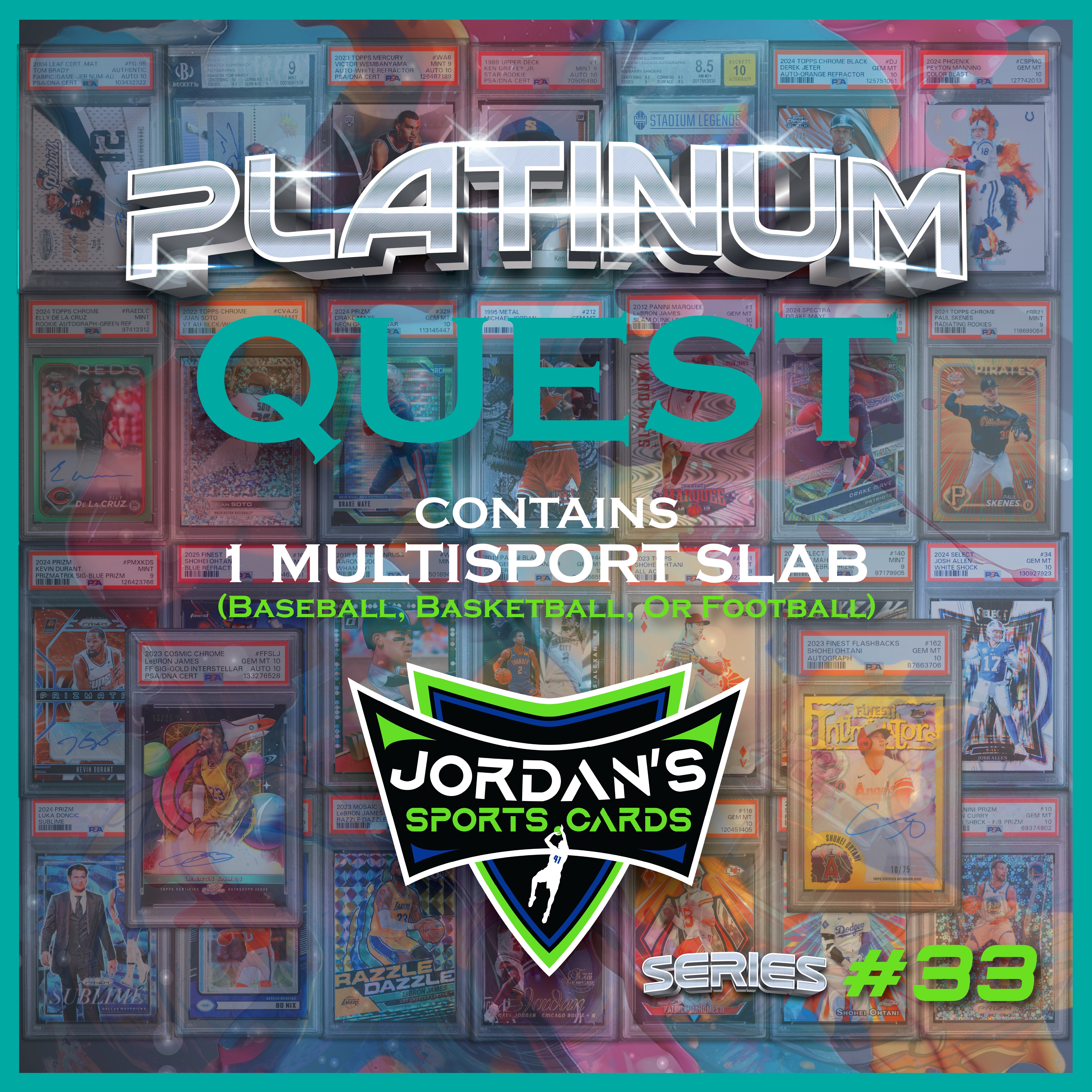Jordan’s Sports Cards Presents Platinum Quest Series 33: The Sports Card Pack Mystery Pack with (1) PSA or BGS graded baseball, basketball, or football card, including big hits from superstars and hall of famers across all three major sports (600 cards total).