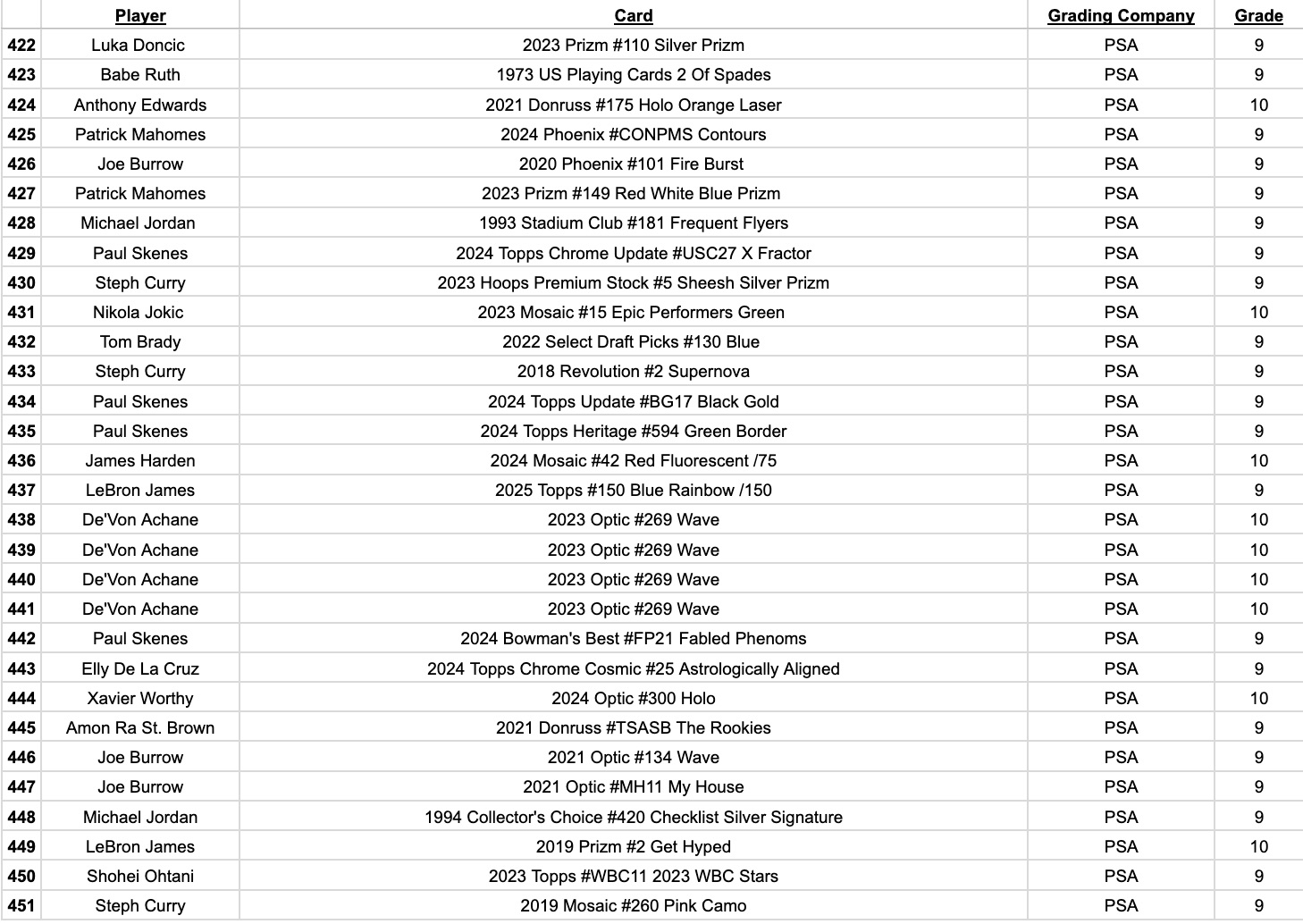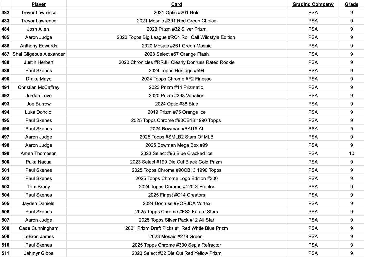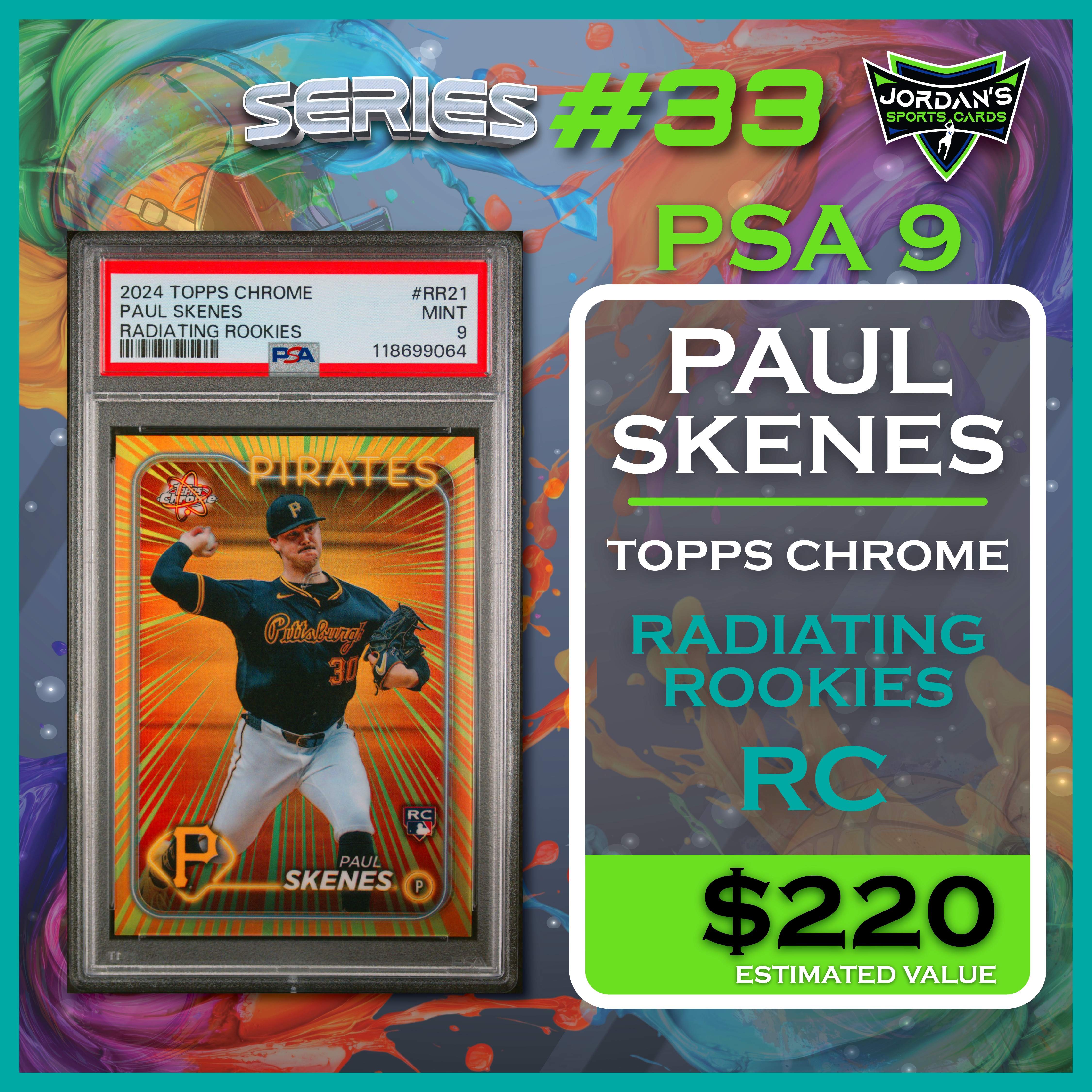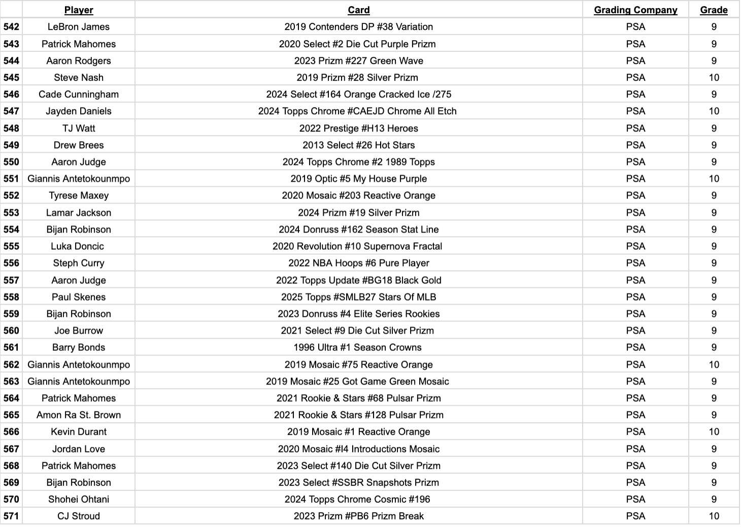 Jordan’s Sports Cards Presents Platinum Quest Series 33: The Sports Card Pack Mystery Pack with (1) PSA or BGS graded baseball, basketball, or football card, including big hits from superstars and hall of famers across all three major sports (600 cards total).
