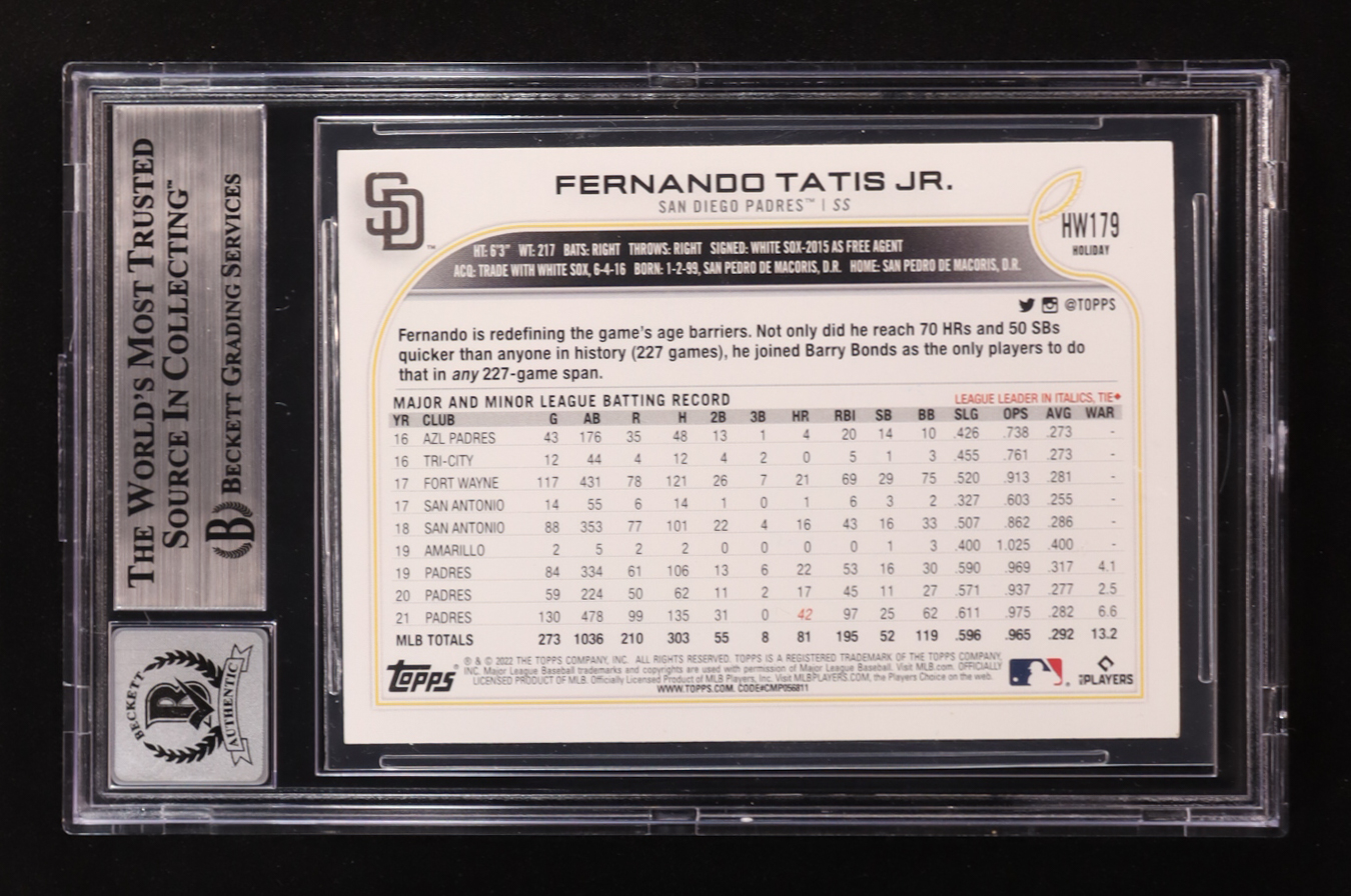 Fernando Tatis Jr. Signed 2022 Topps Holiday #HW-179 (BGS | Autograph Graded BGS 10)