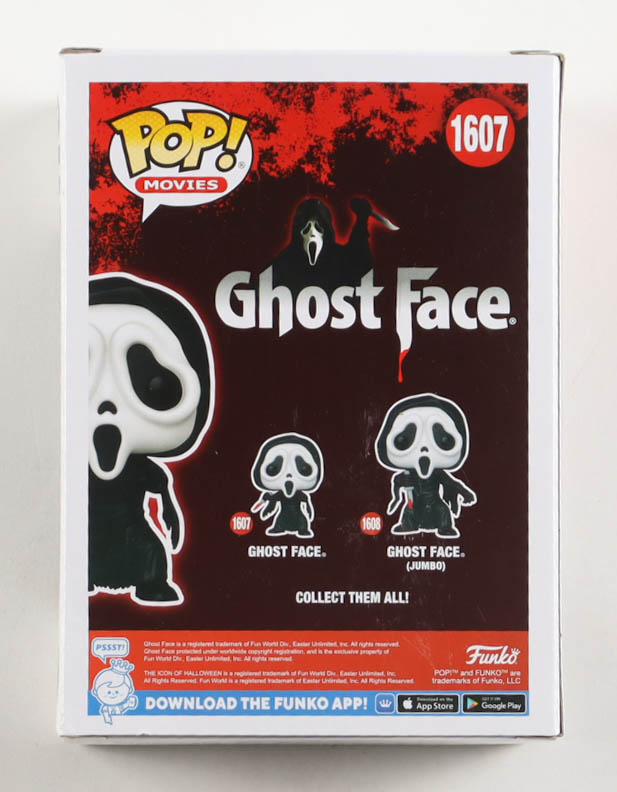 Funko Pop! vinyl figure measures approximately 4" in height and has been hand-signed and inscribed on the packaging by Roger L. Jackson (Voice of Ghost Face).