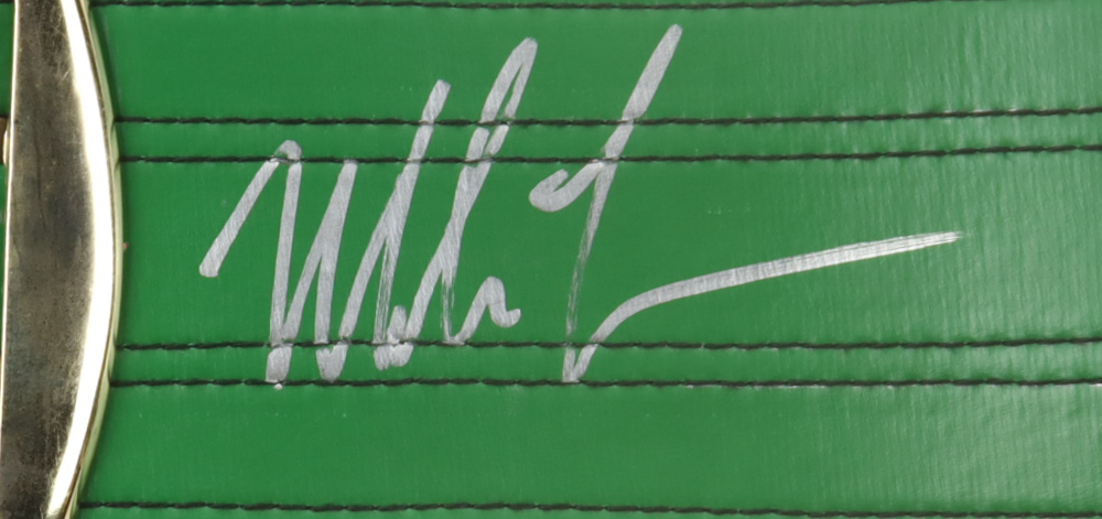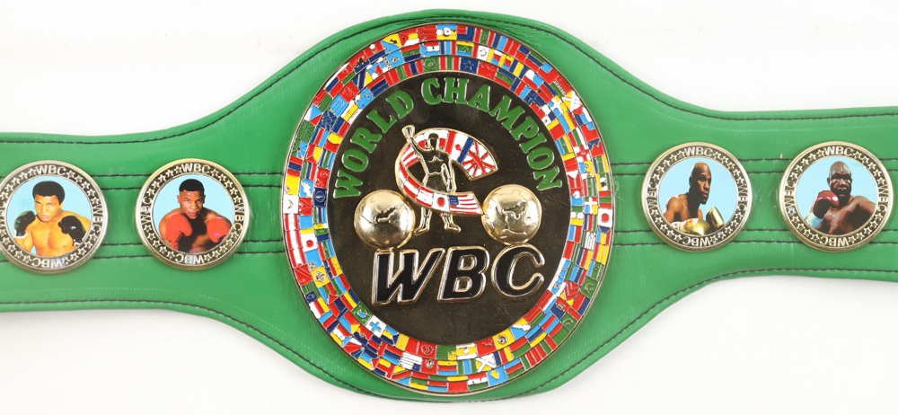Replica WBC Championship belt, approximately 48" in length. Hand-signed by Mike Tyson (HOF) and Evander Holyfield (HOF). See photos for more details.