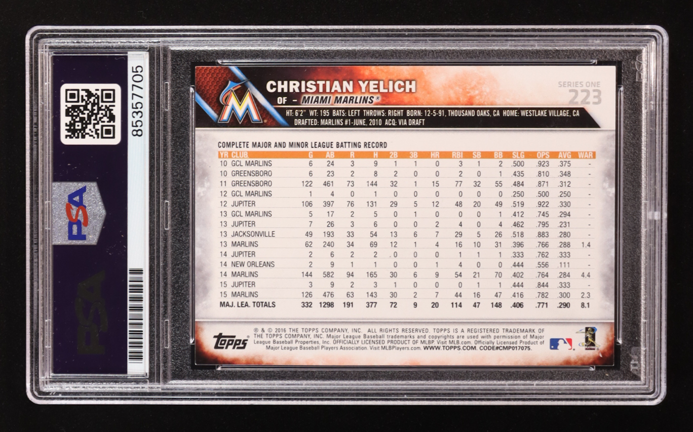 Christian Yelich Signed 2016 Topps Series One #223 (PSA)