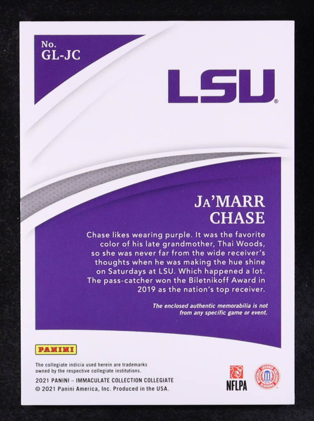 Ja'Marr Chase 2021 Immaculate Collection Collegiate Immaculate Gloves #9 #51/90 RC