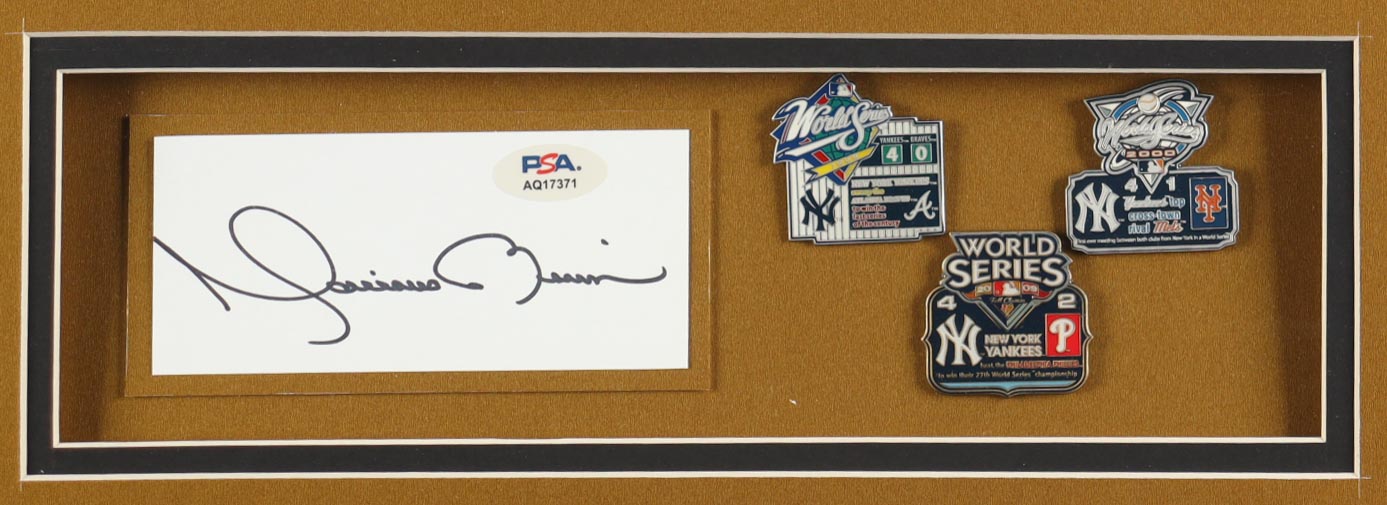 Mariano Rivera Signed Custom Framed Cut Display with Jersey & (3) World Series Pins (PSA)