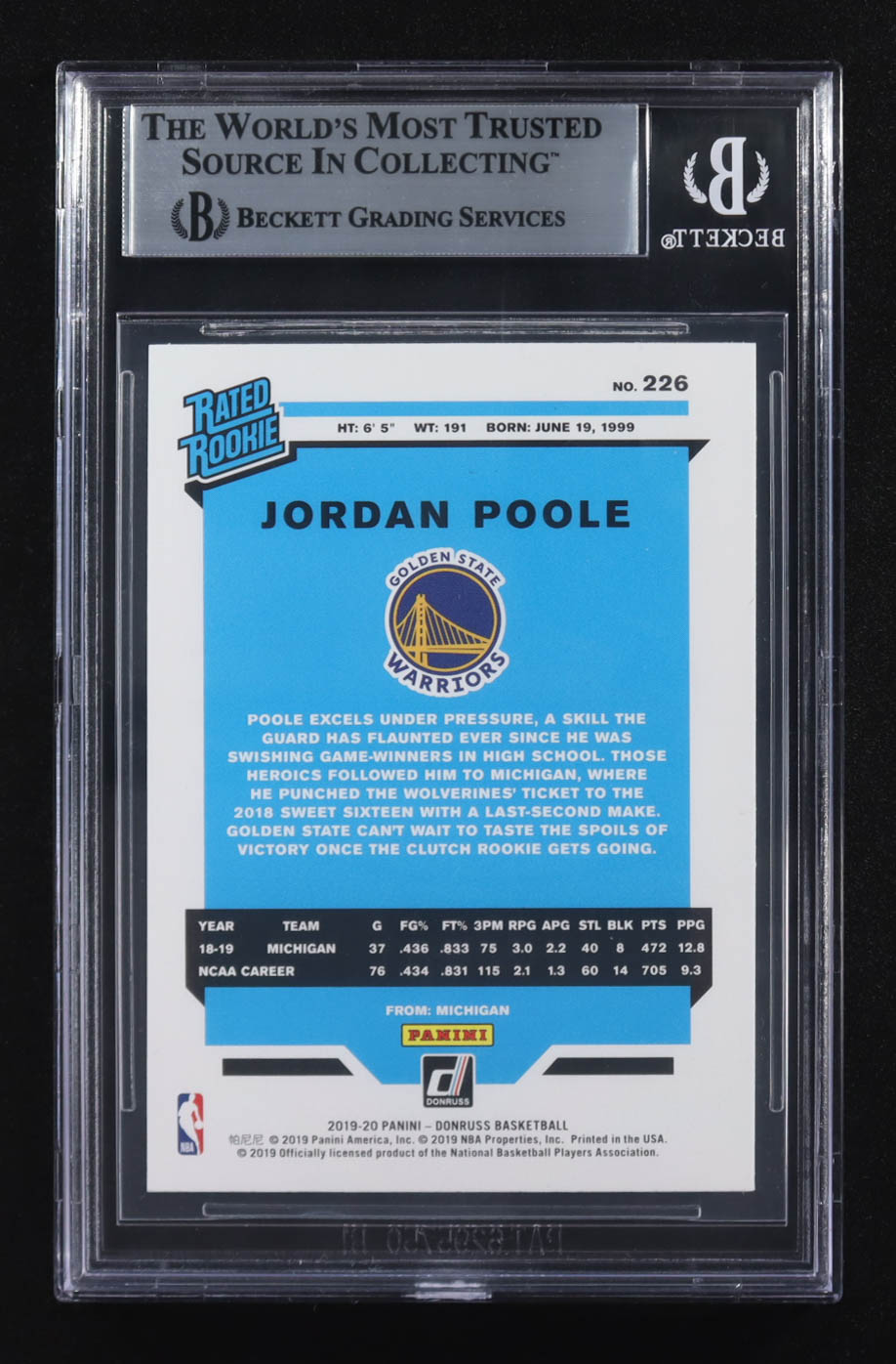 Jordan Poole Signed 2019-20 Panini Donruss Inscribed "Poole Party" RR #226 RC (BGS)
