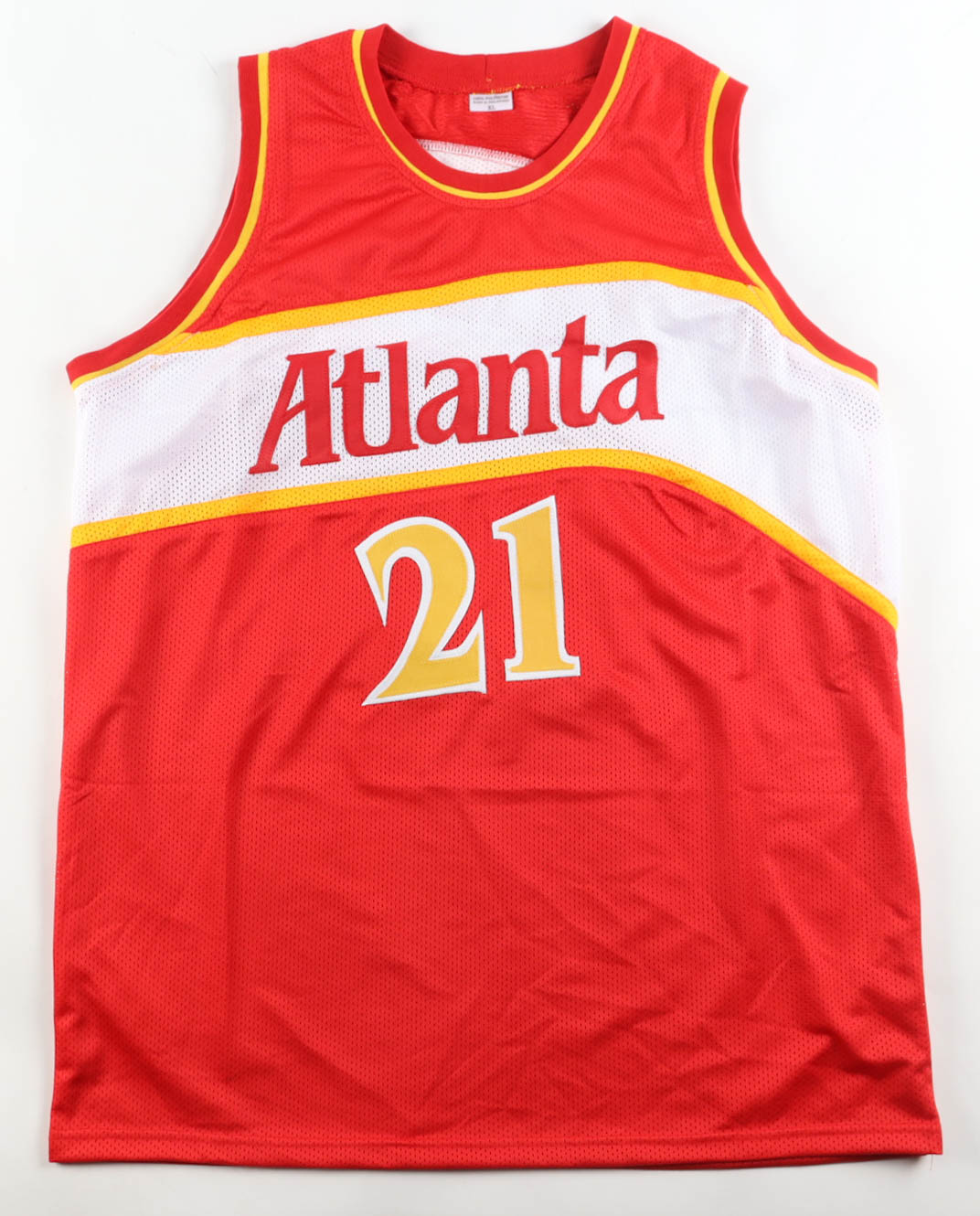 Custom jersey with everything sewn on, size XL. Hand-signed by Dominique Wilkins.