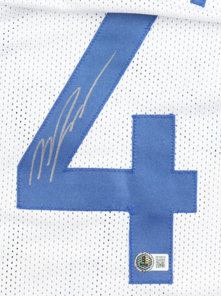 Custom jersey is size XL. Everything is sewn on. Hand-signed by Moses Moody.