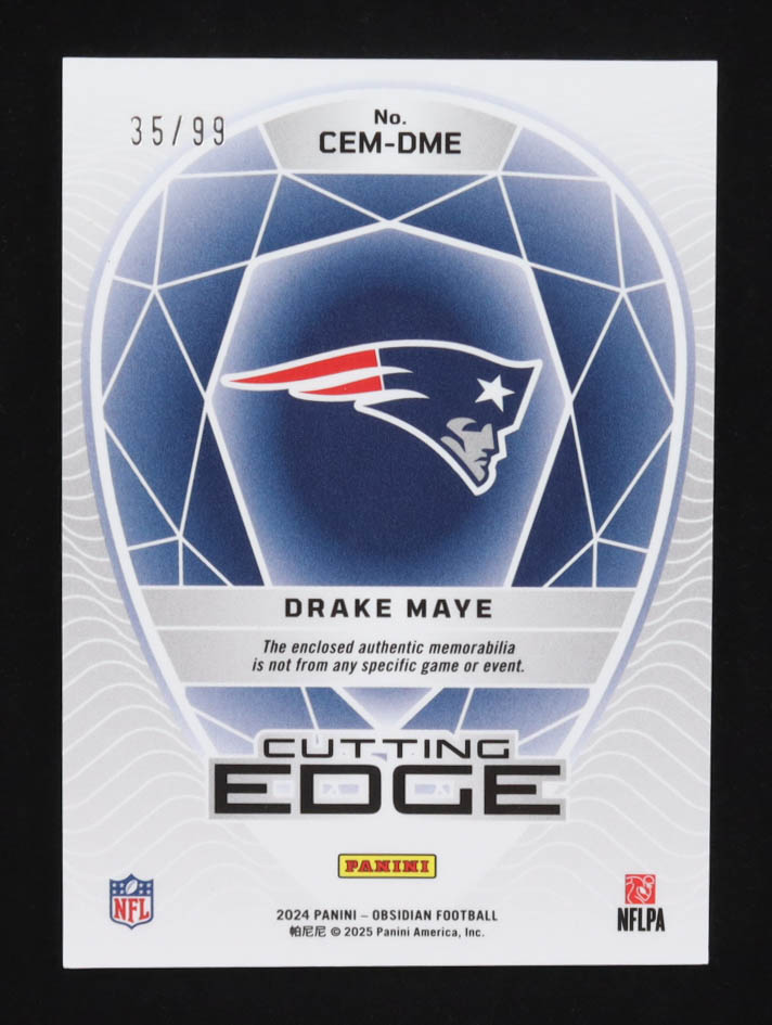 Drake Maye 2024 Panini Obsidian Cutting Edge Materials Silver #9 #35/99 RC