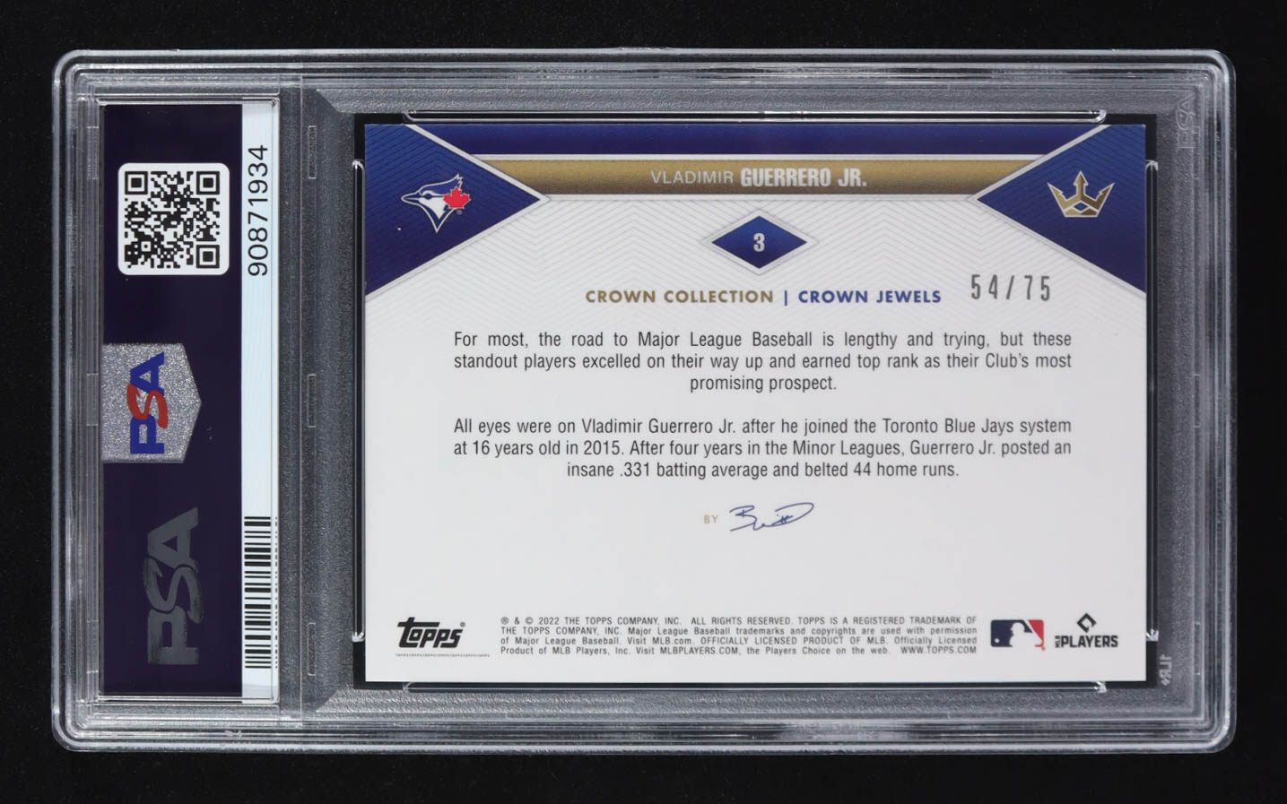 Vladimir Guerrero Jr. 2022 Topps X Bobby Witt Jr. Crown Collection Green #3 #54/75 (PSA 9)