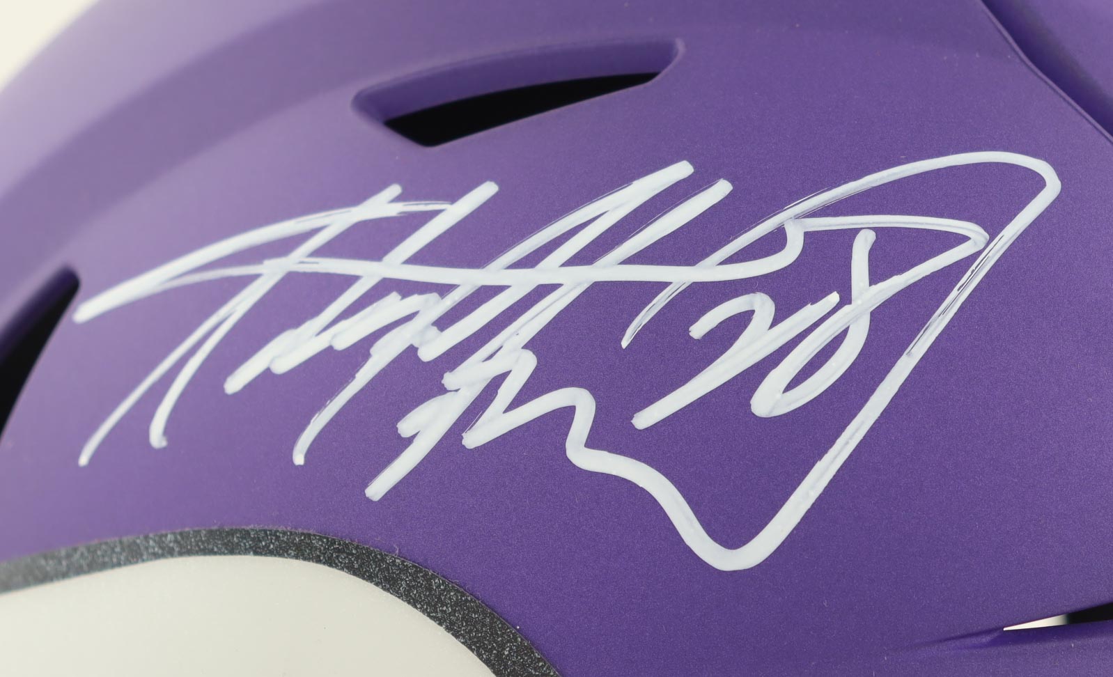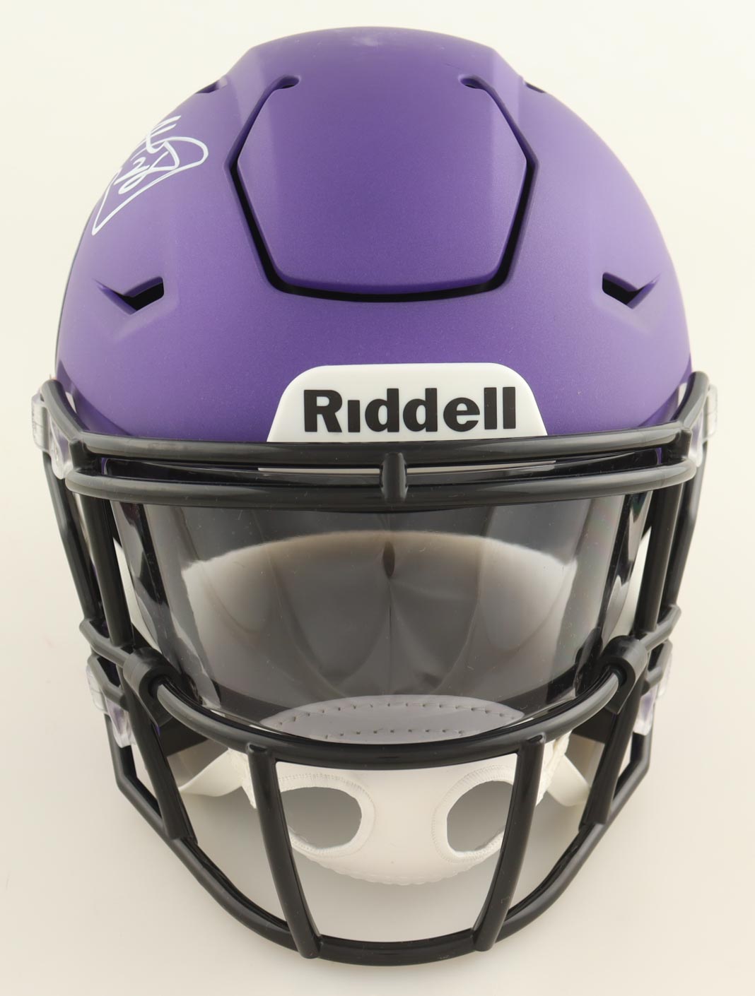 Riddell Minnesota Vikings Speed mid-size helmet has been hand-signed by Adrian Peterson.