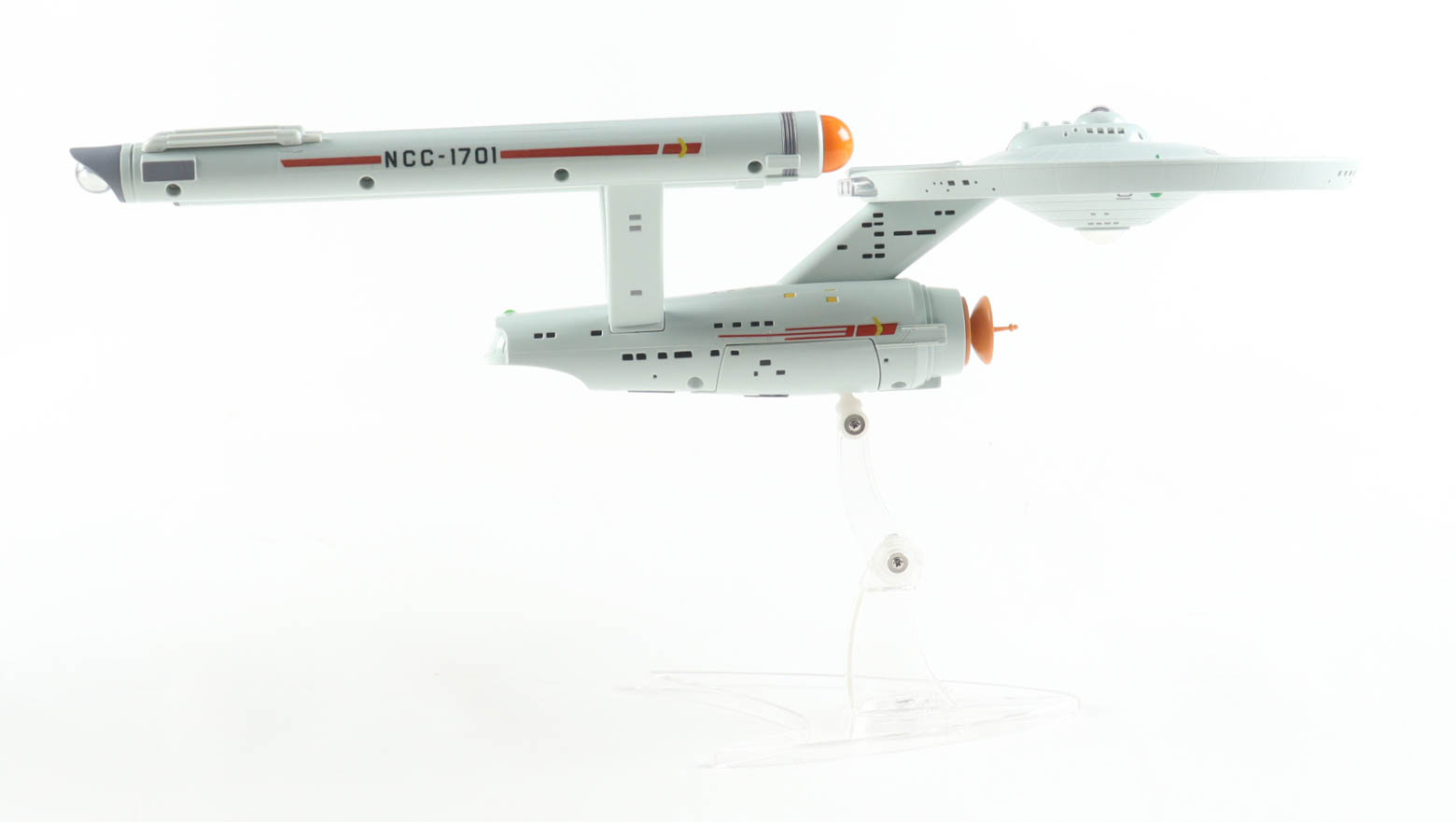 2022 Playmates Toys Classic Star Trek "U.S.S. Enterprise NCC-1701" Electronic Starship. Hand-signed in by William Shatner (Captain James T. Kirk). Please note, item has been damaged. Refer to photos regarding the condition of the item.