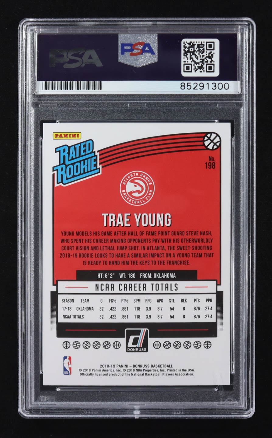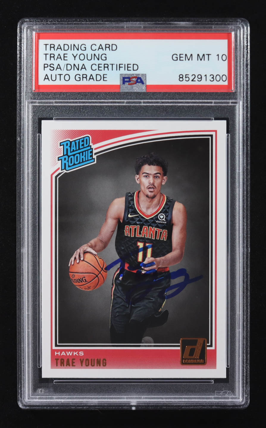 Trae Young Signed 2018-19 Panini Donruss RR #198 RC (PSA | Autograph Graded PSA 10)