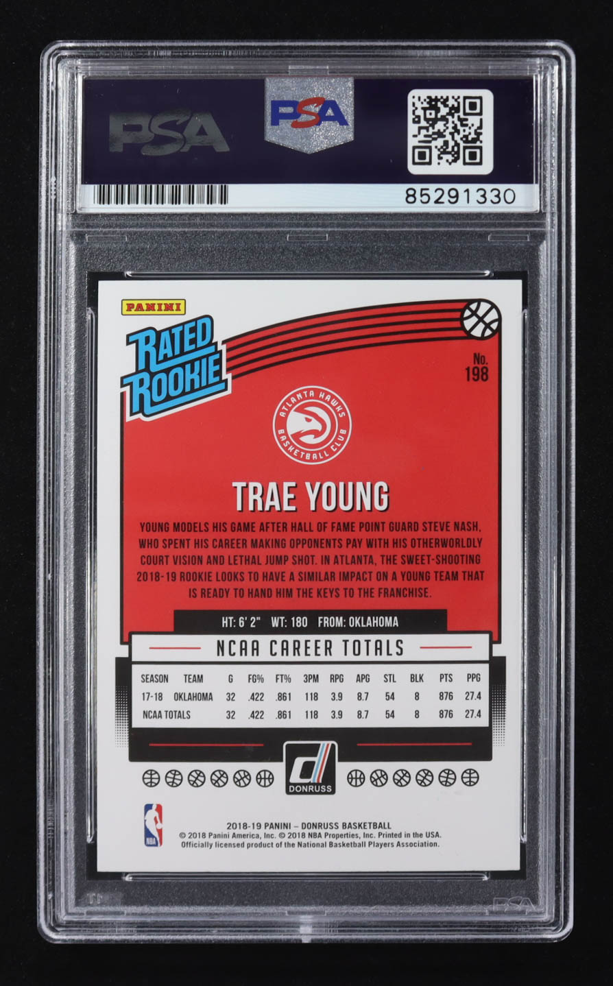 Trae Young Signed 2018-19 Panini Donruss RR #198 RC (PSA | Autograph Graded PSA 10)