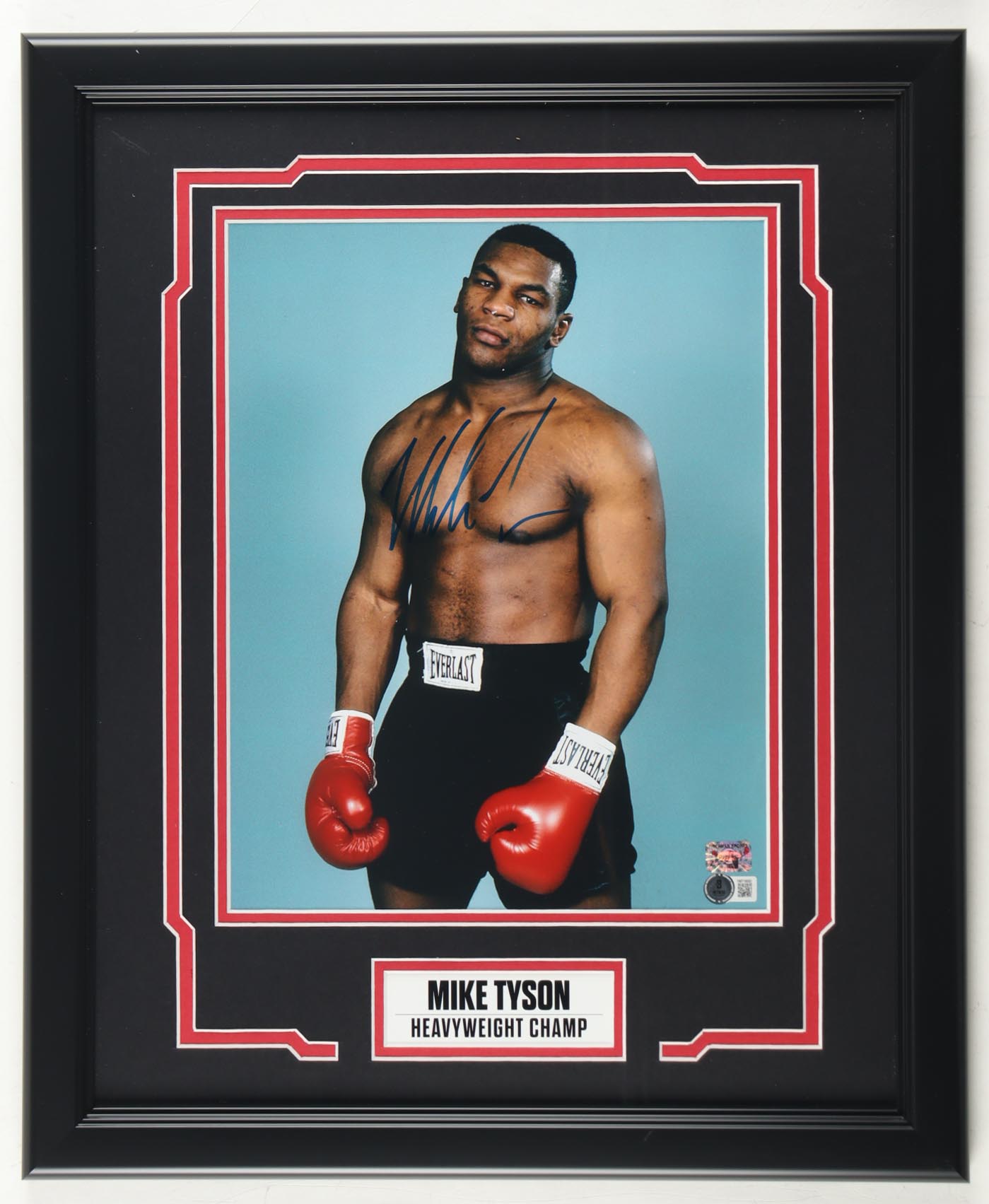 Custom frame measures approximately 19" x 23" in size and features a photo that has been hand-signed by Mike Tyson (HOF).