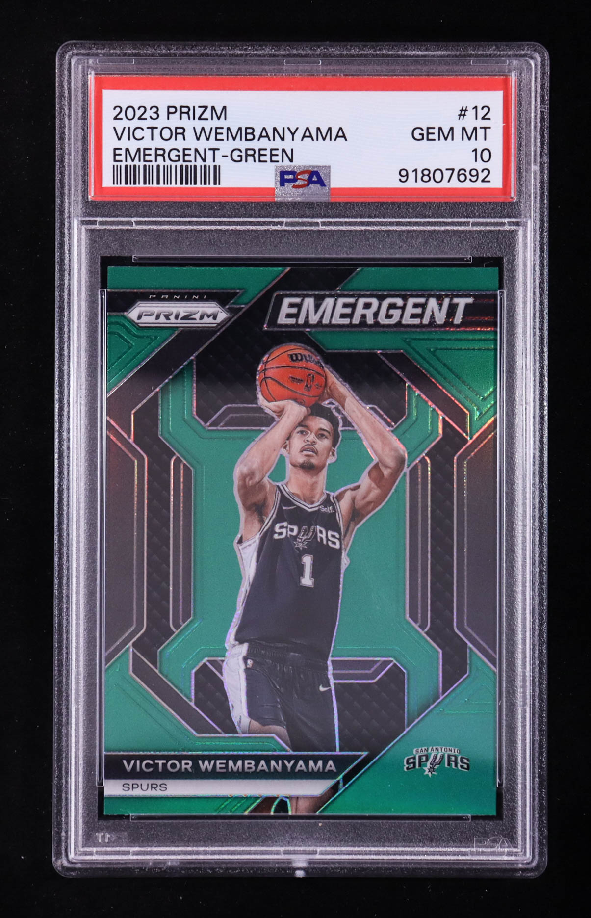 Victor Wembanyama 2023-24 Panini Prizm Emergent Prizms Green #12 RC (PSA 10)