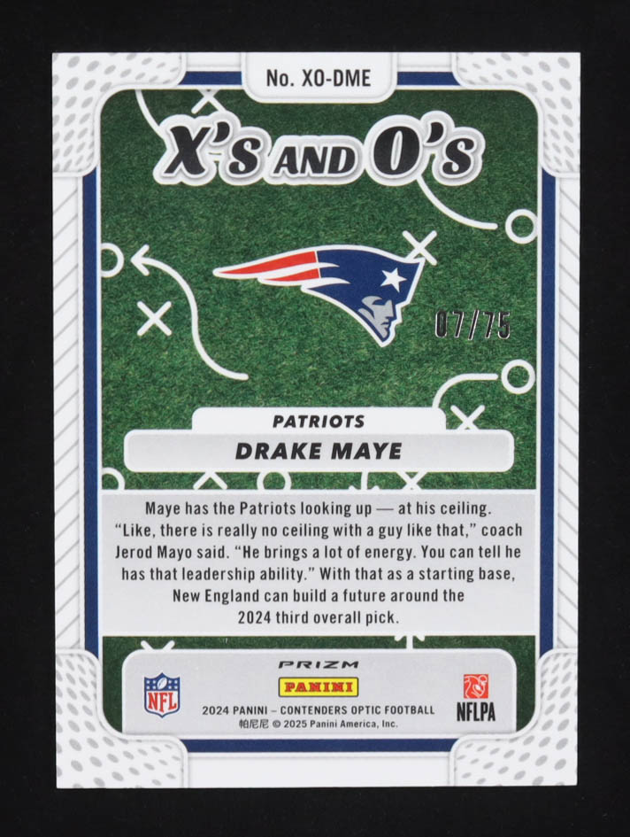Drake Maye 2024 Panini Contenders Optic Xs and Os Pink #39 #07/75 RC