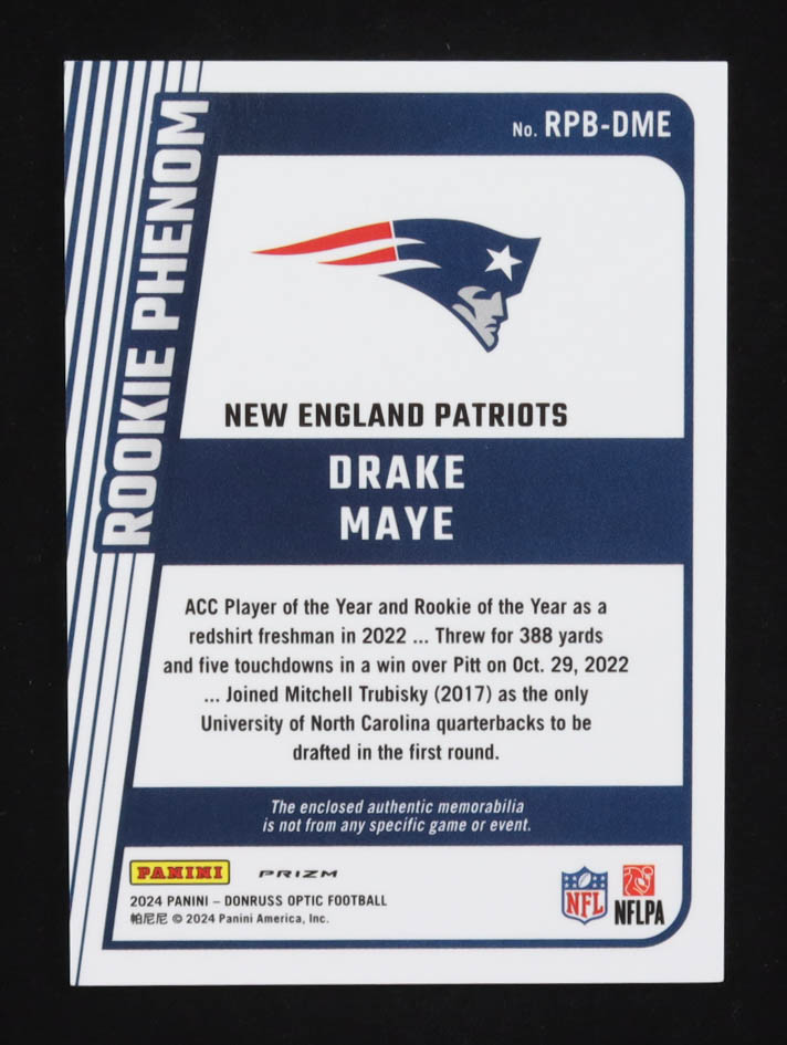 Drake Maye 2024 Donruss Optic Rookie Phenoms Blue Hyper #12 RC