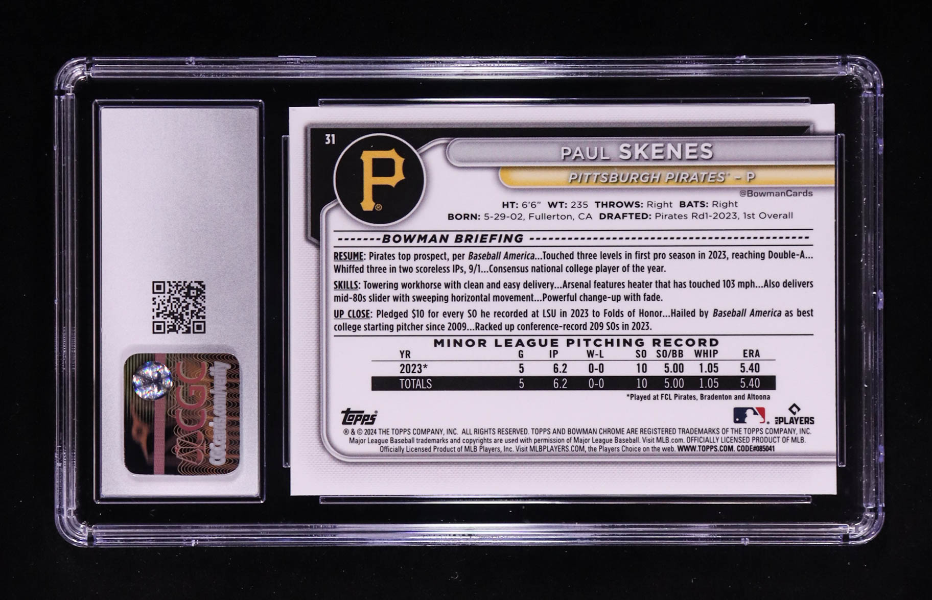 Paul Skenes 2024 Bowman Chrome #31 RC (CGC 10)