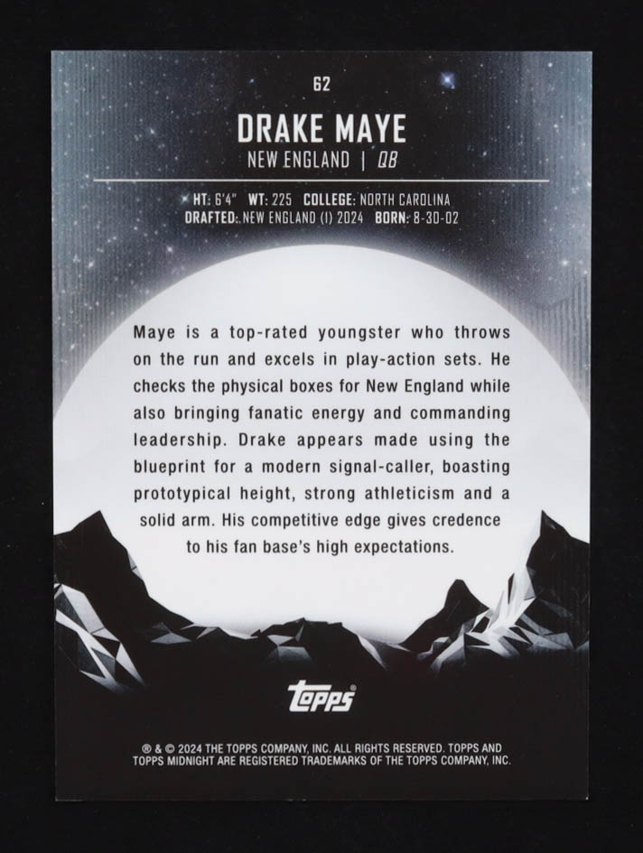 Drake Maye 2024 Topps Midnight Twilight #62 #54/99 RC
