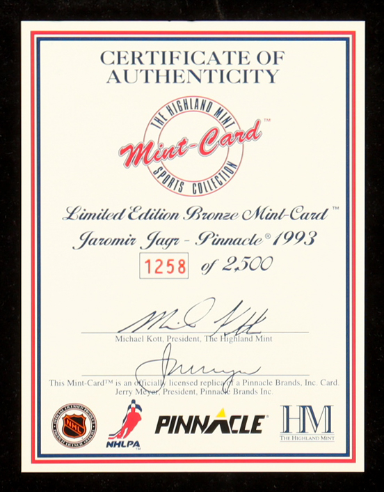 Jaromir Jagr 1993 Pinnacle Highland Mint Bronze Mint-Card #3,387/5,000 RC