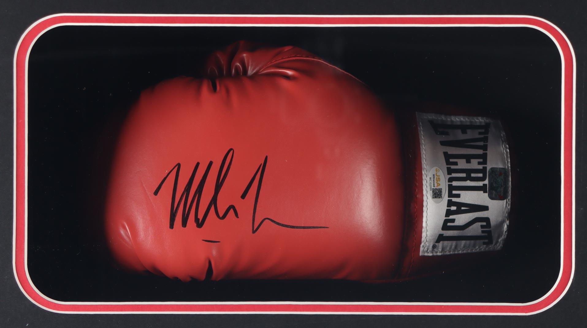 Custom shadowbox measures 22" x 27" x 6.5" in size and features an Everlast boxing glove that has been hand-signed by Mike Tyson (HOF).