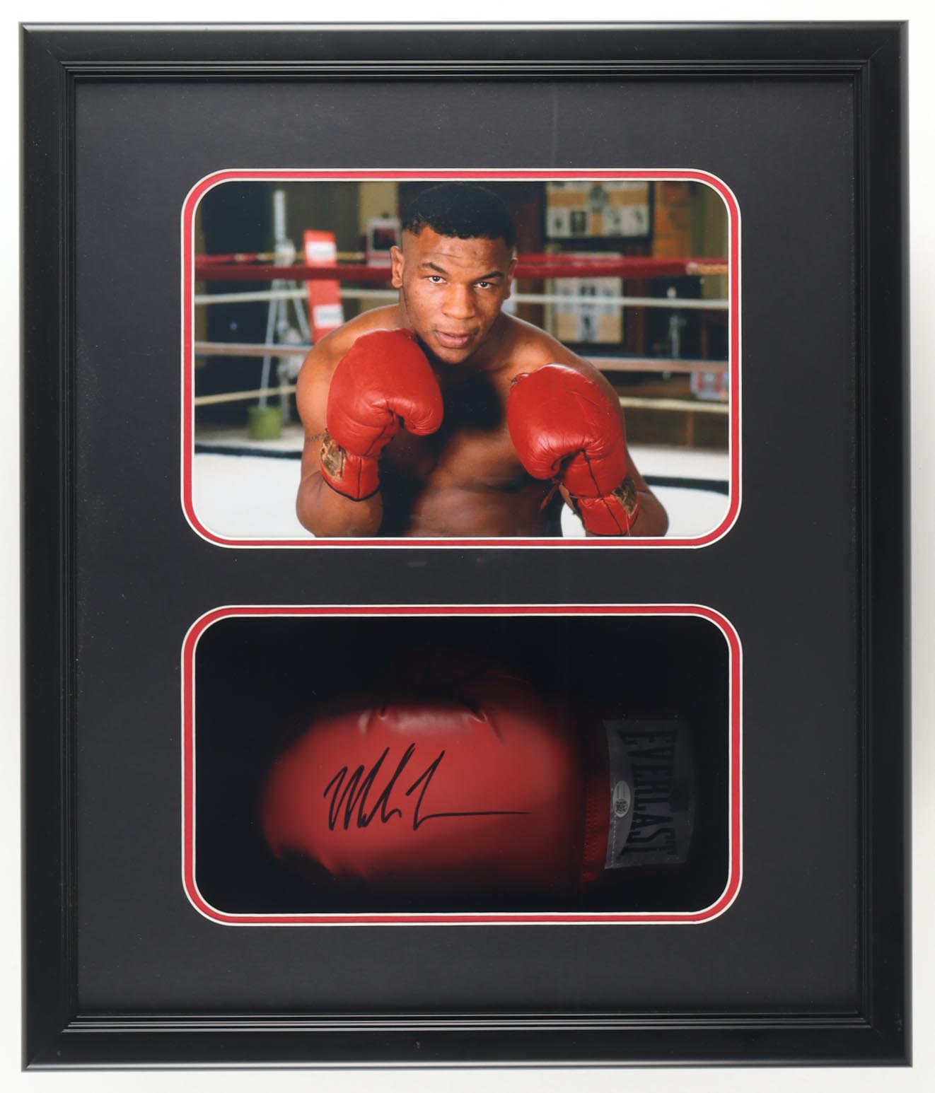 Custom shadowbox measures 22" x 27" x 6.5" in size and features an Everlast boxing glove that has been hand-signed by Mike Tyson (HOF).