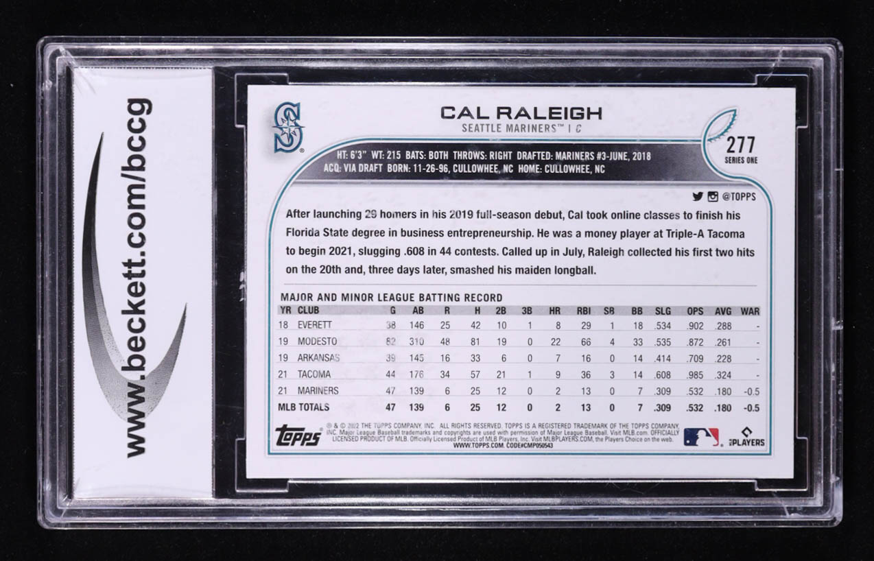 Cal Raleigh 2022 Topps Series One #277 RC (BCCG 10)
