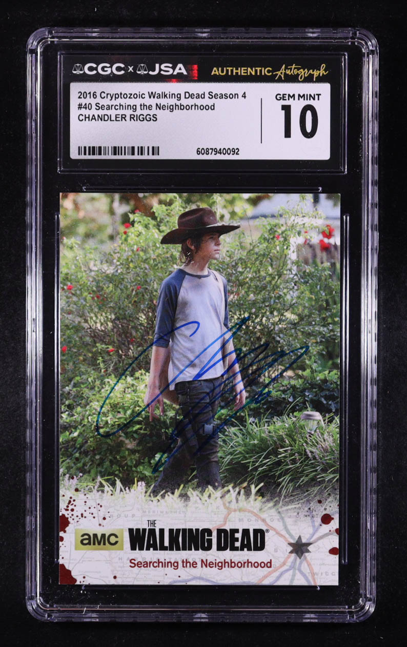 Card graded CGC 10 has been hand-signed by Chandler Riggs. Please see photos for details regarding the condition of the card.