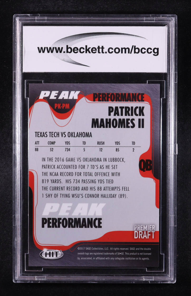 Patrick Mahomes II 2017 SAGE HIT Premier Draft Peak Performance #PKPM RC (BCCG 10)