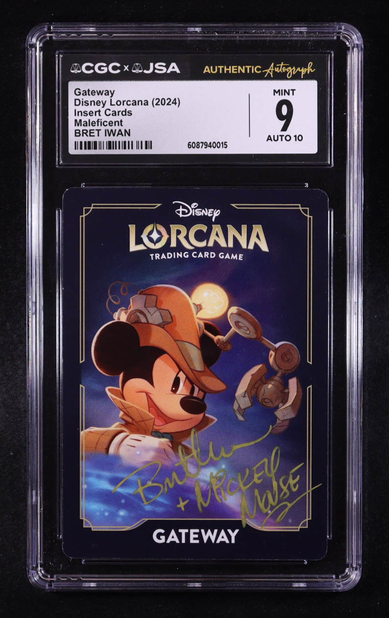 Bret Iwan Signed 2024 Disney Lorcana TCG Maleficent Gateway Insert #NNO Inscribed "Mickey Mouse" (CGC 9 | Auto 10)