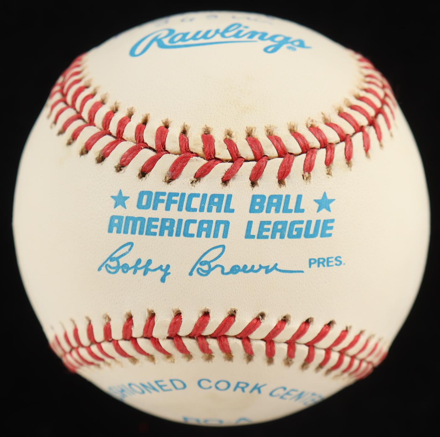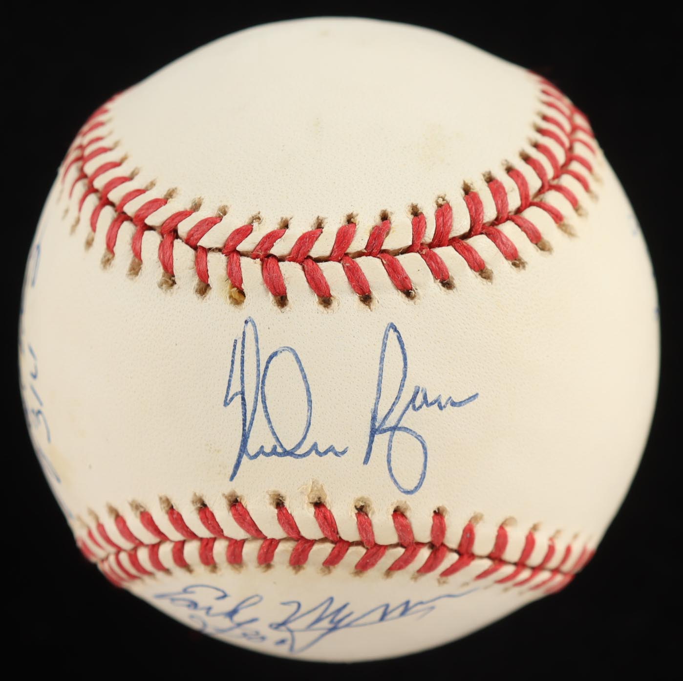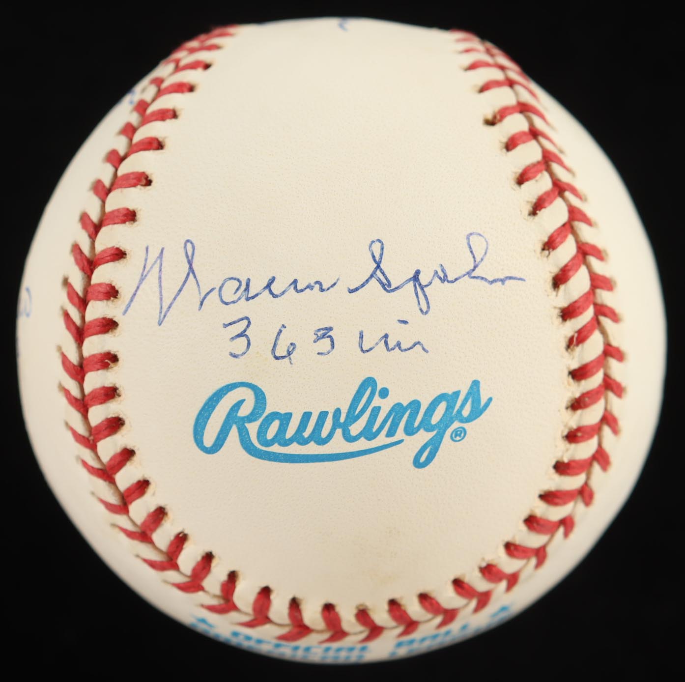 Rawlings Official American League Baseball. Hand-signed by (5) with Nolan Ryan, Phil Neikro, Early Wynn, Warren Spahn, and Don Sutton The display case is included as shown.