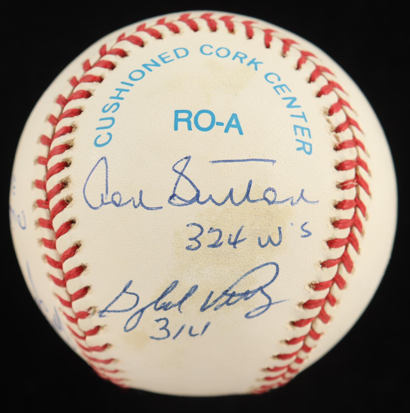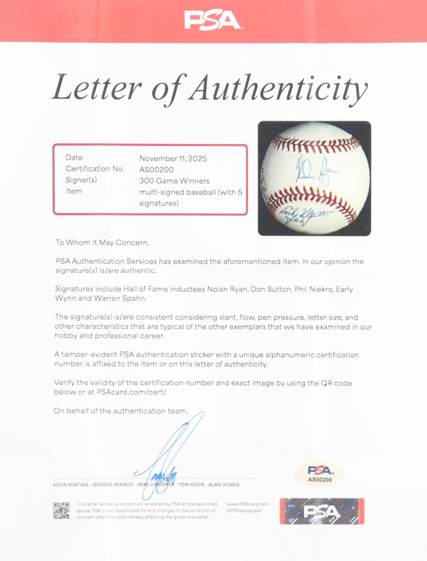 300 Game Winners OAL Baseball Signed by (5) with Nolan Ryan, Phil Neikro, & Early Wynn In Display Case (PSA)
