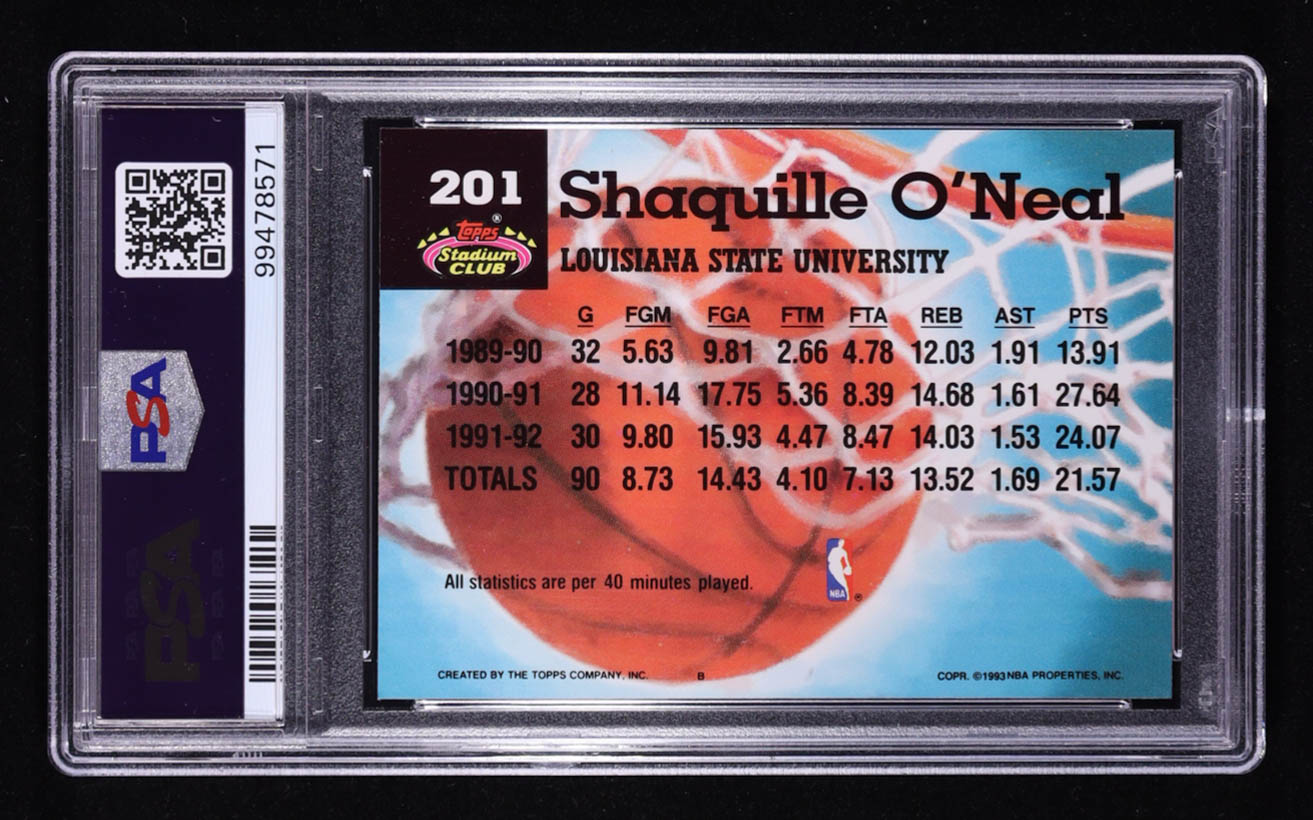 Shaquille O'Neal 1992 Topps Stadium Club #201 RC (PSA 9)