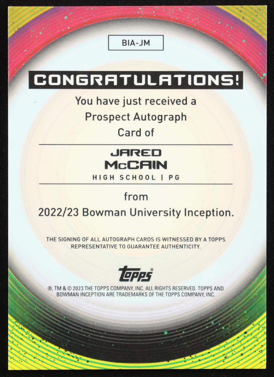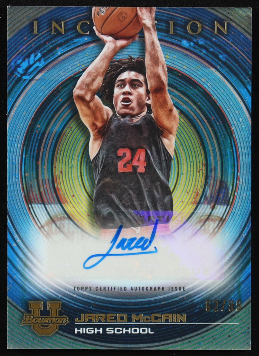 Jared McCain 2022-23 Bowman Inception University Autographs Blue Foil #BIAJM #62/99 RC