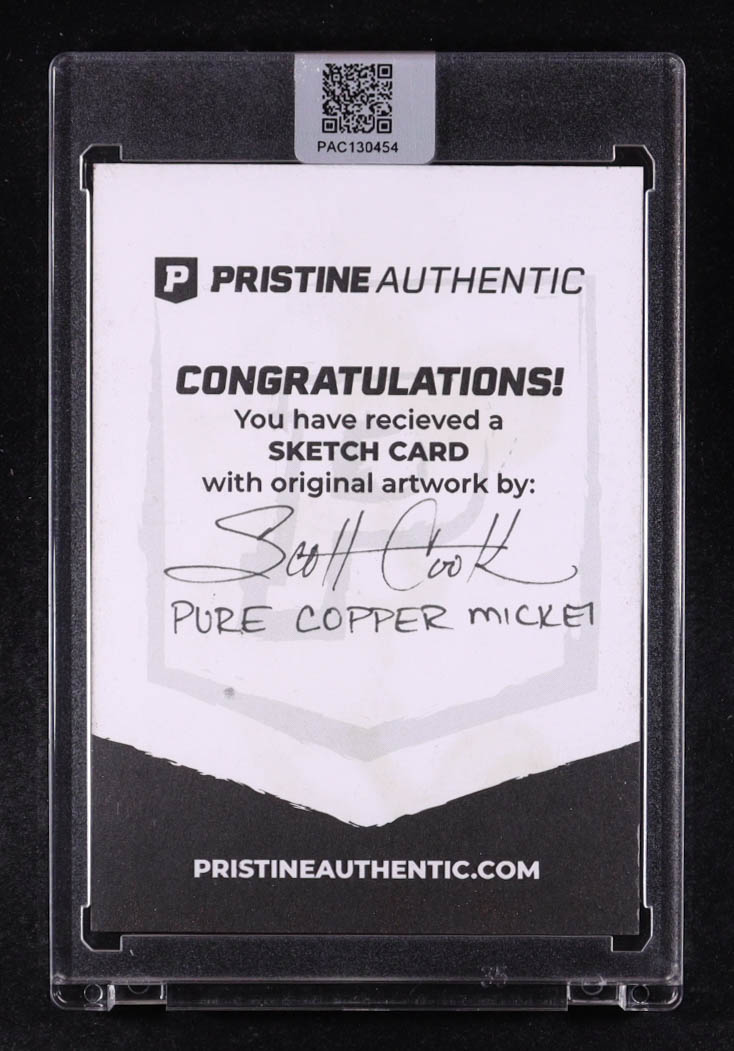This original sketch card includes original art by award winning Walt Disney artist, Scott Cook. The card is hand-signed along with a character name inscription on the back by the artist.