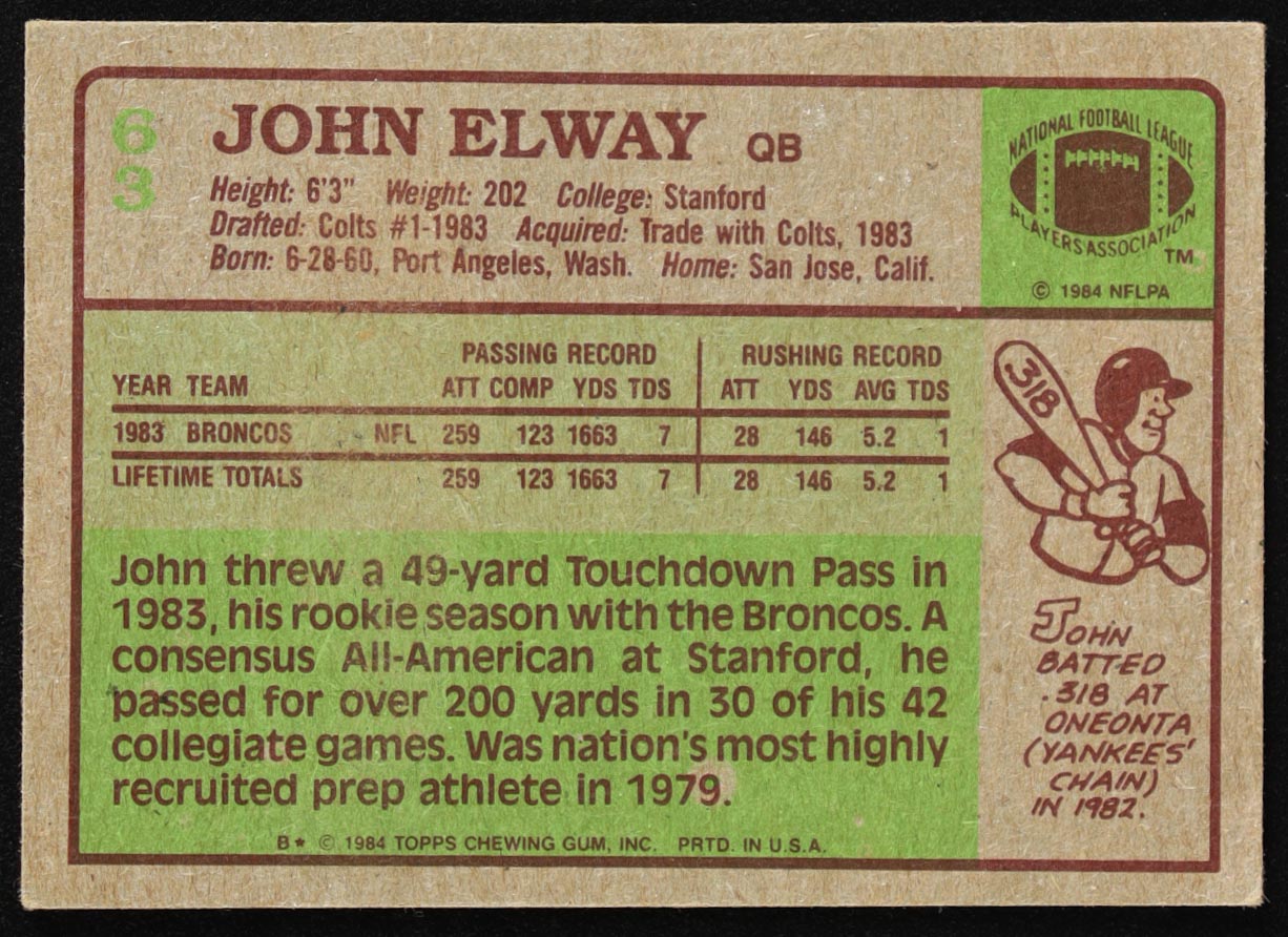 John Elway 1984 Topps #63 RC