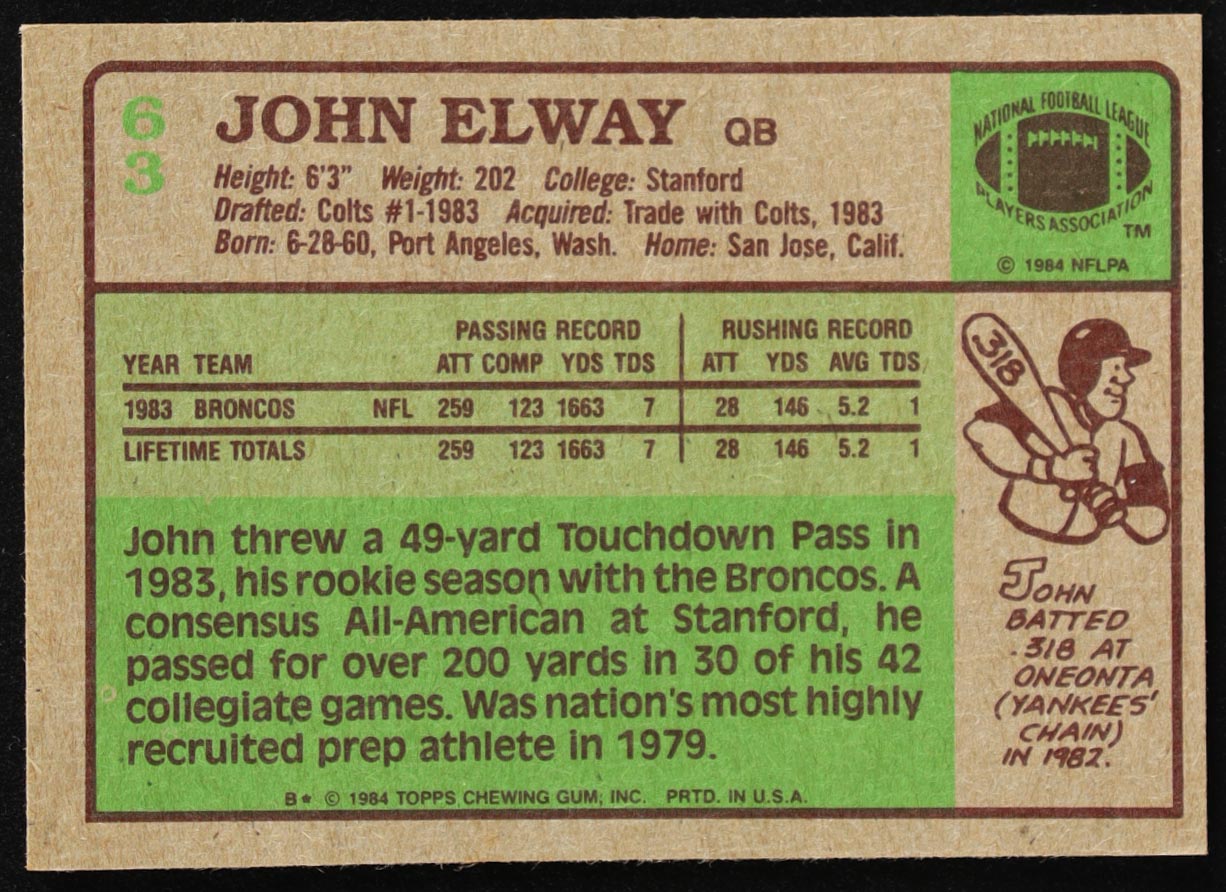 John Elway 1984 Topps #63 RC