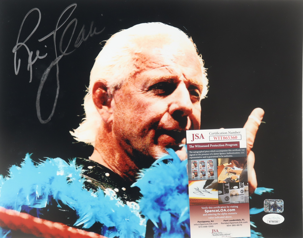 Photograph measures 11" x 14" in size. Hand-signed by Ric Flair (HOF).