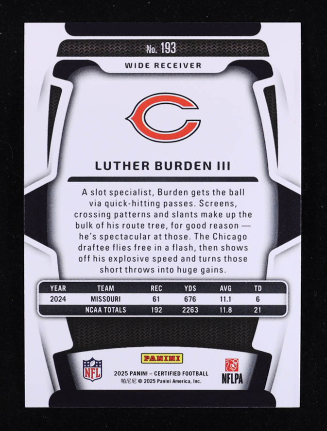 Luther Burden III 2025 Certified Mirror Pink #193 #102/225 RC