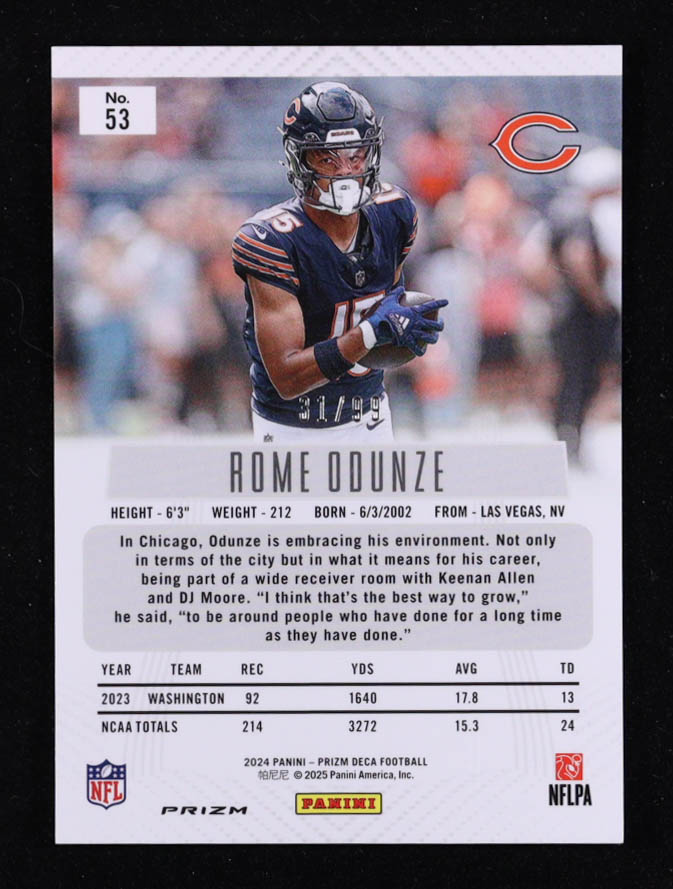Rome Odunze 2024 Panini Prizm Deca Prizms Purple #53 #31/99 RC