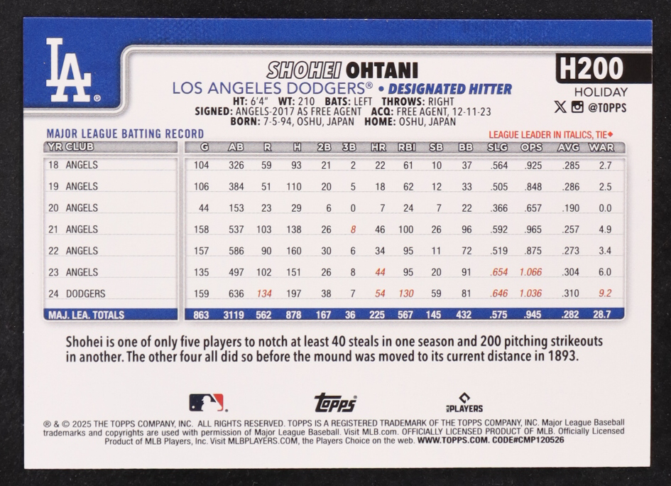 Shohei Ohtani 2025 Topps Holiday #H200