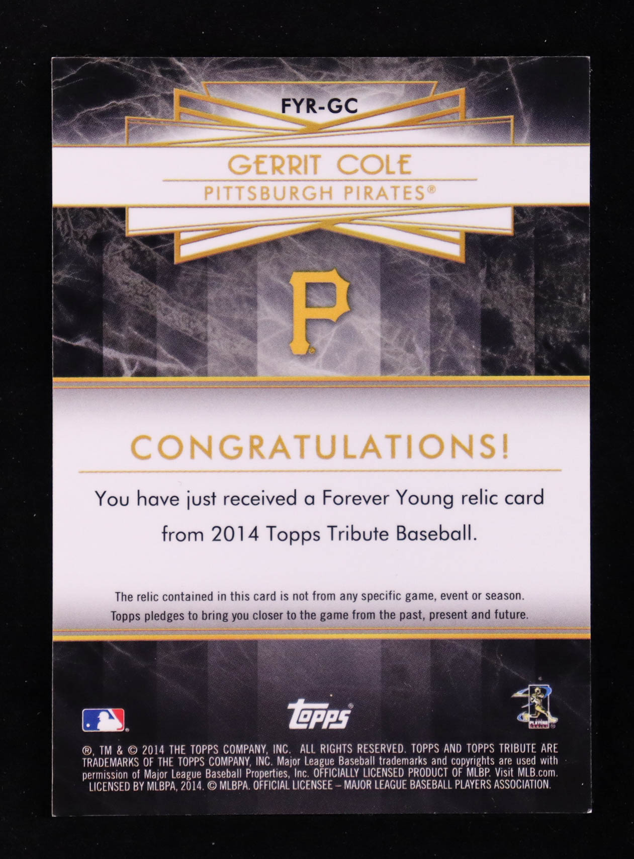 Gerrit Cole 2014 Topps Tribute Forever Young Relics Blue #FYRGC #05/50