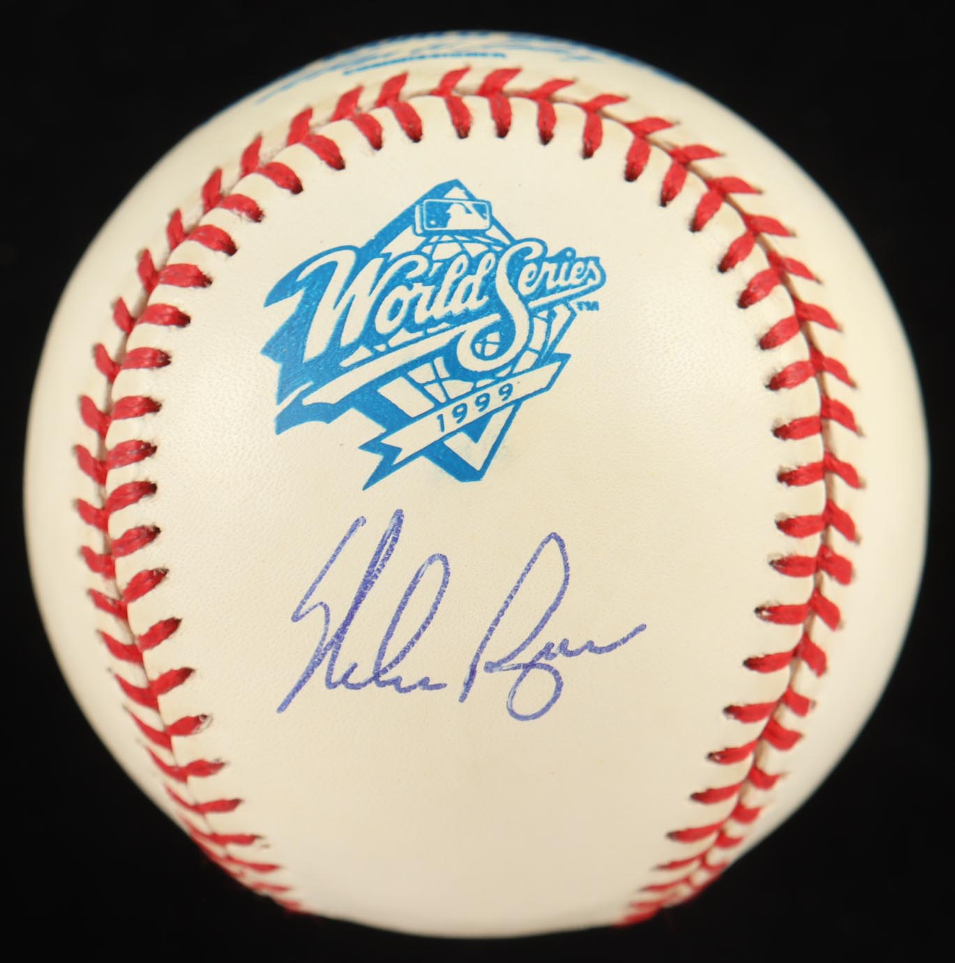 Rawlings 1999 World Series Official Baseball. Hand-signed by Nolan Ryan (Texas Rangers, HOF). Please note, ball has been naturally stained toned. Refer to photos regarding the condition of the item.