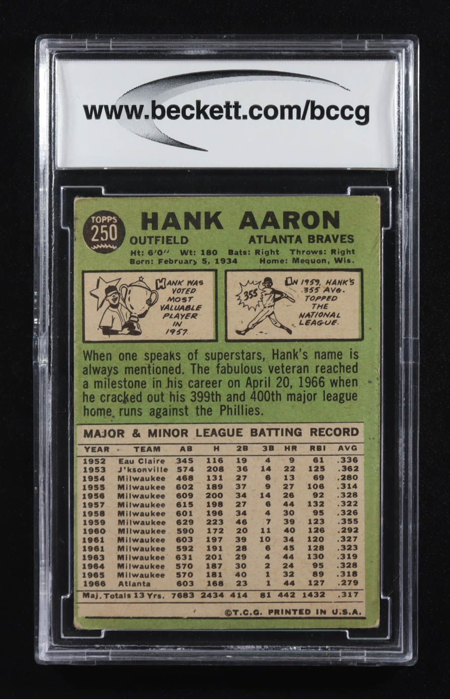 Hank Aaron 1967 Topps UER #250 (BCCG 7)