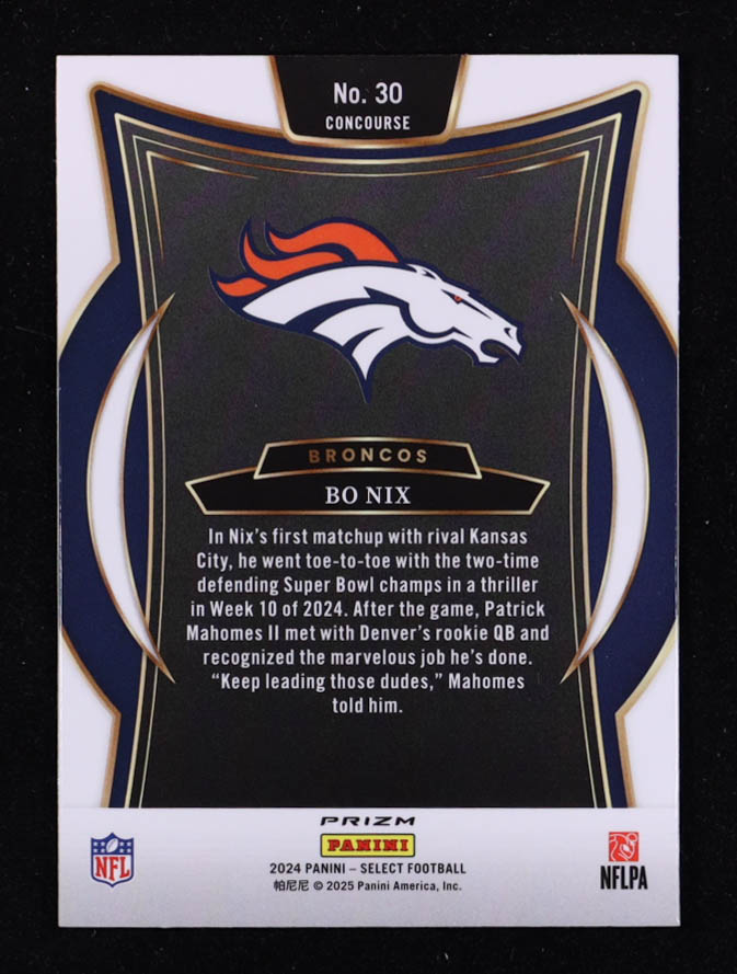Bo Nix 2024 Select Prizm Black and Blue Shock #30 RC