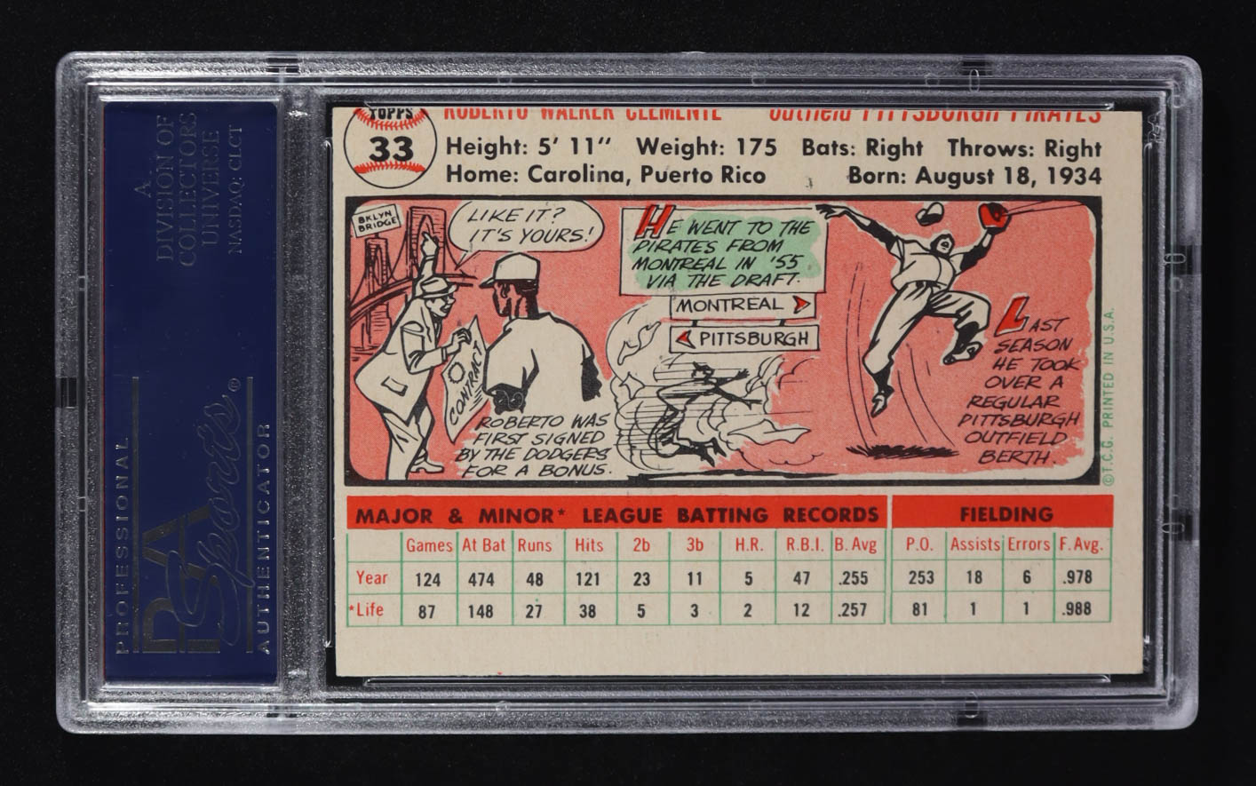 Roberto Clemente 1956 Topps White Back #33 (PSA 8)